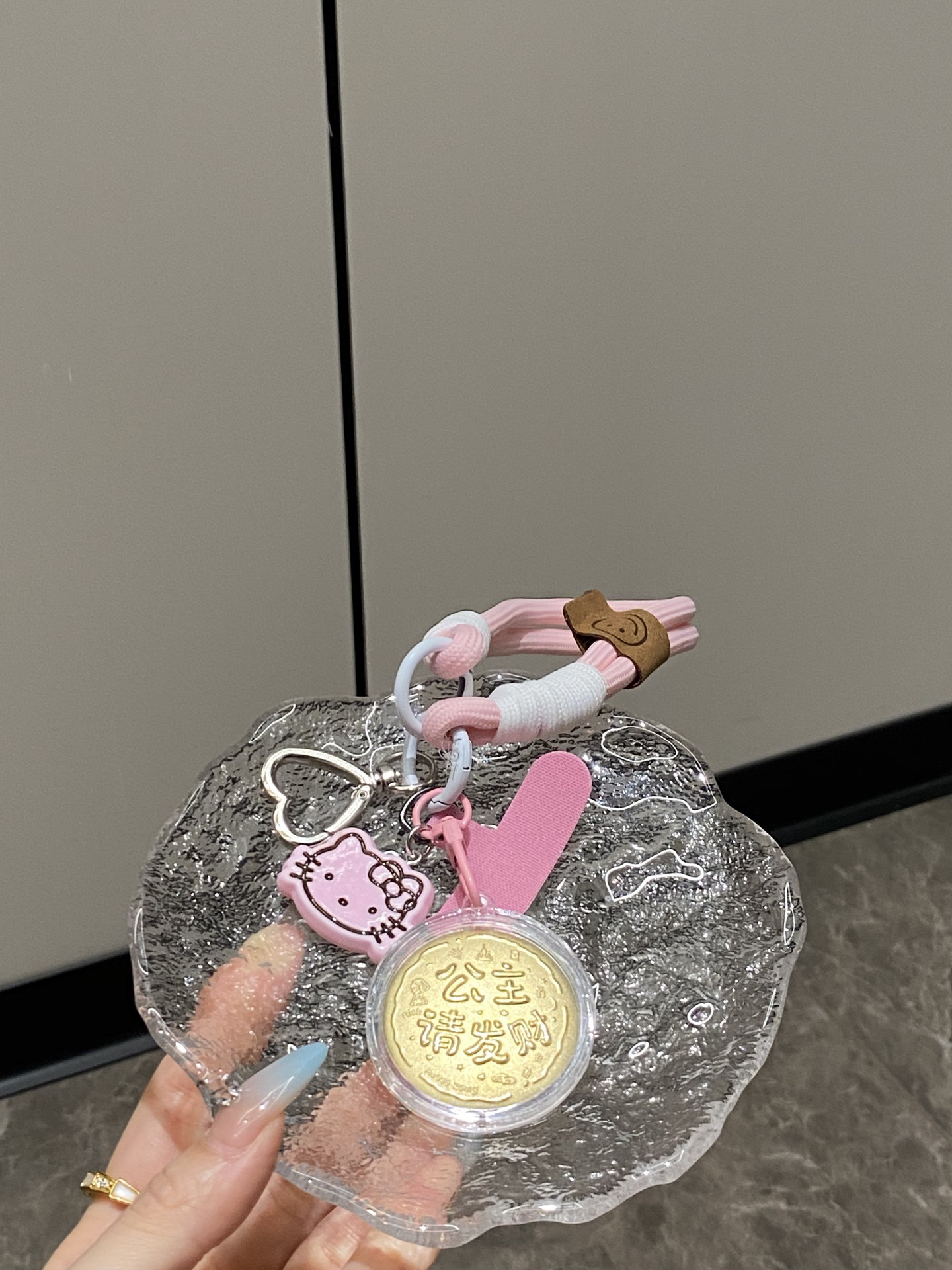 足金公主请发财手机挂件