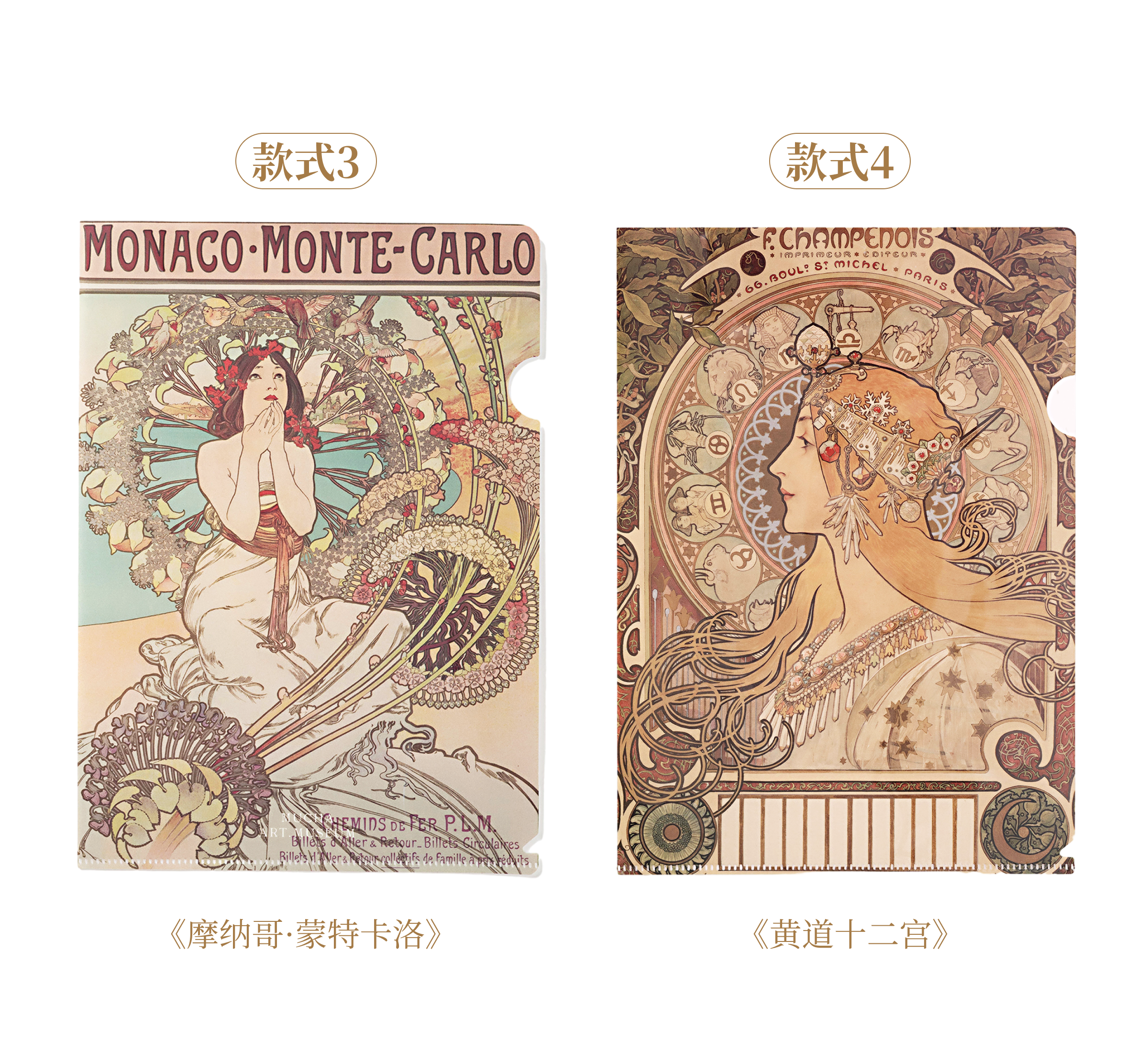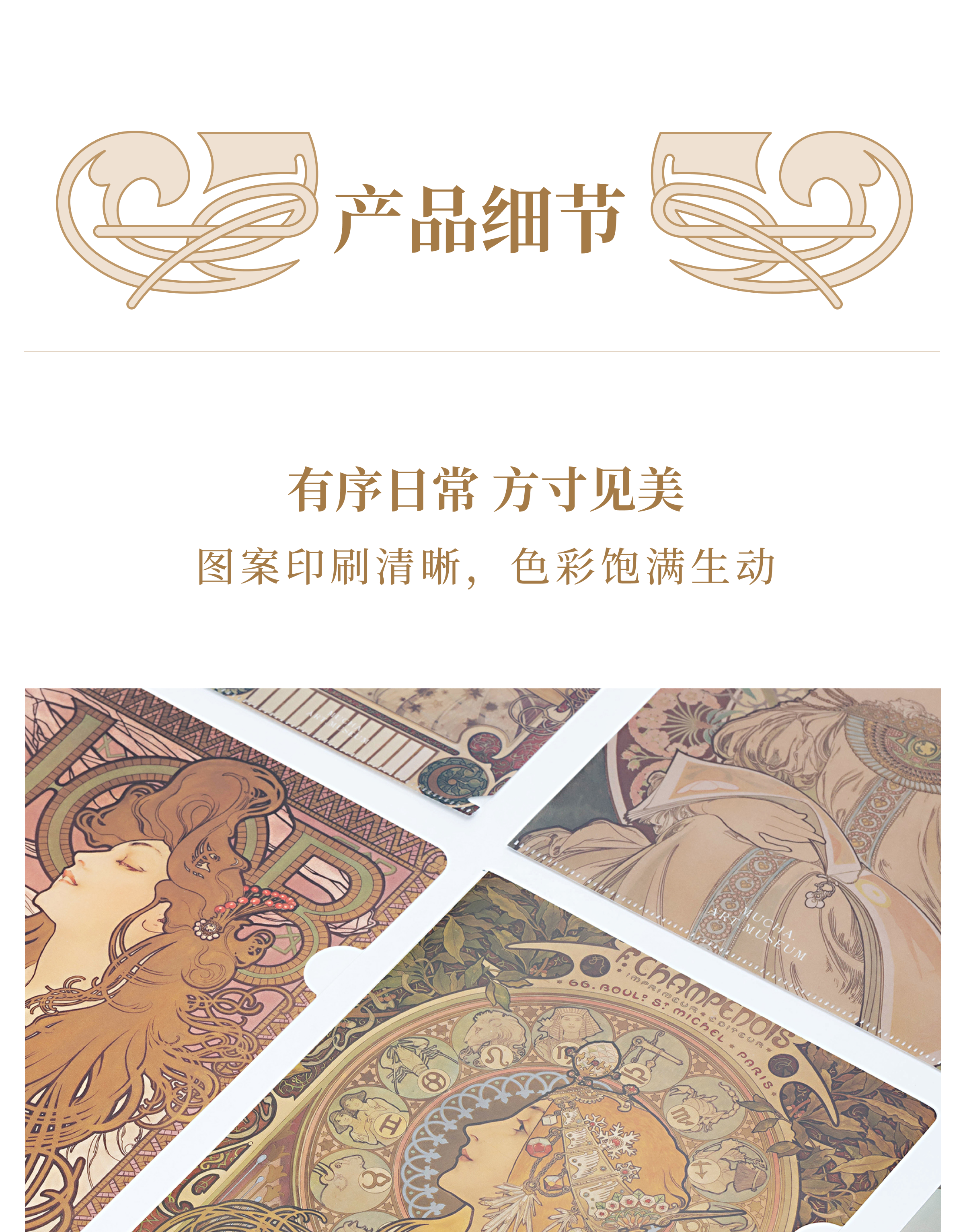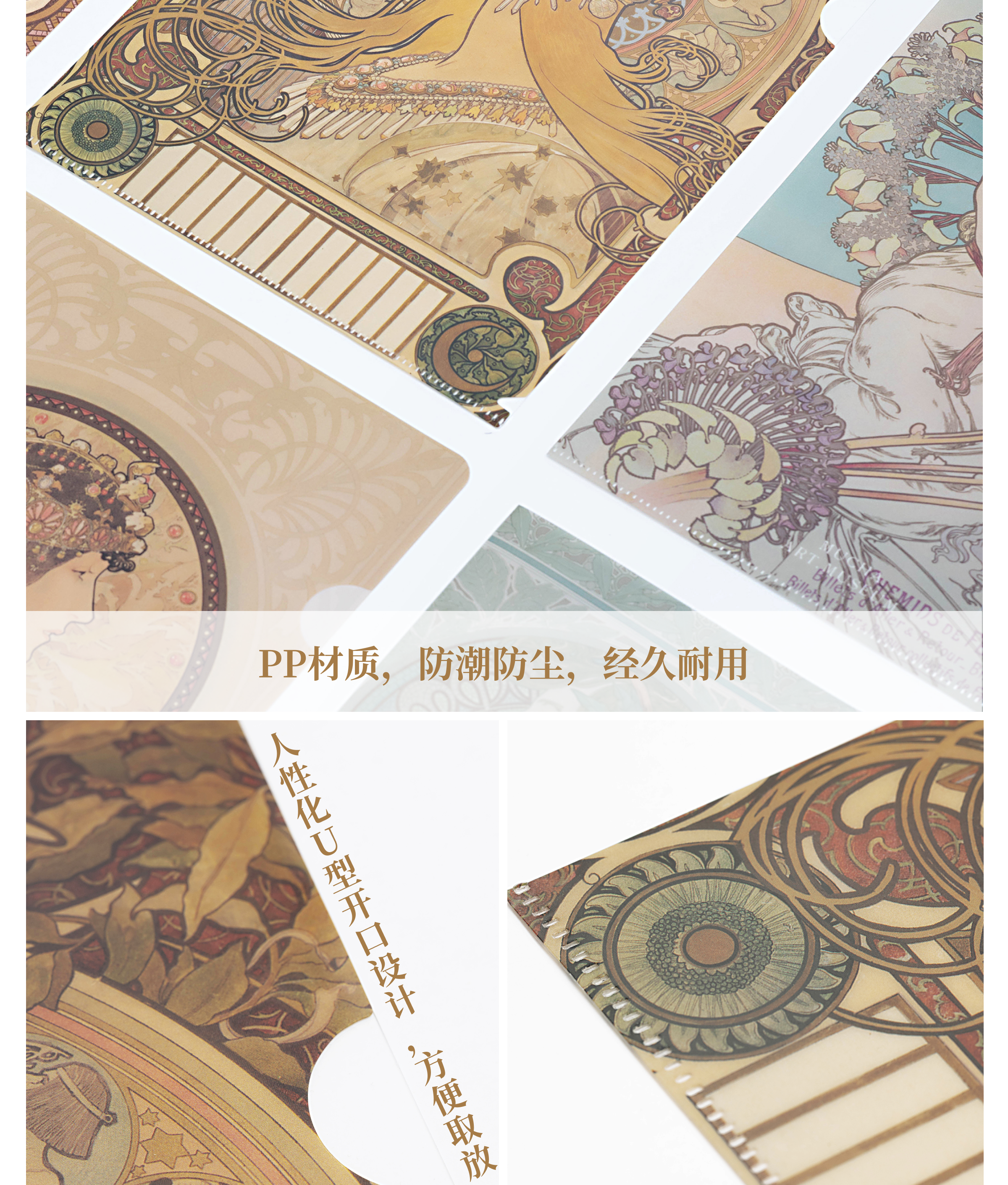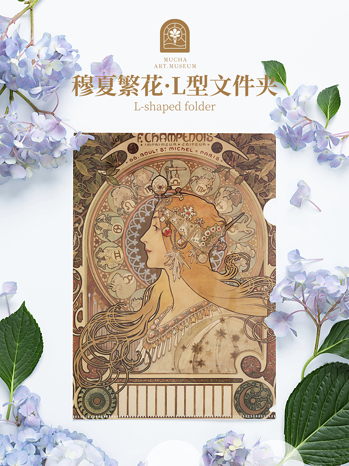 【毕业礼物】穆夏繁花 · 美术馆博物馆世界名画创意文件夹L型收纳袋适用于A4A5学生文具 · 7个套装(A4文件5个+A5文件2个)