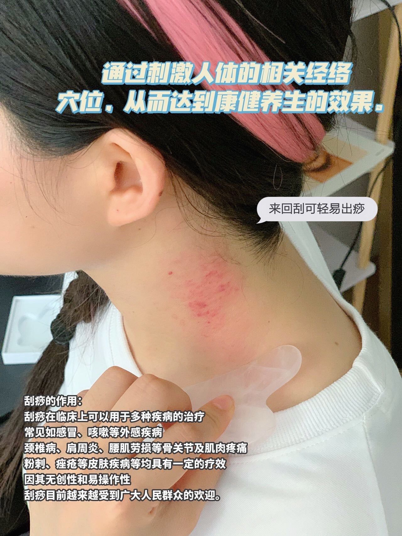 除了面部刮痧还可以刮刮肩颈,缓解肌肉僵硬