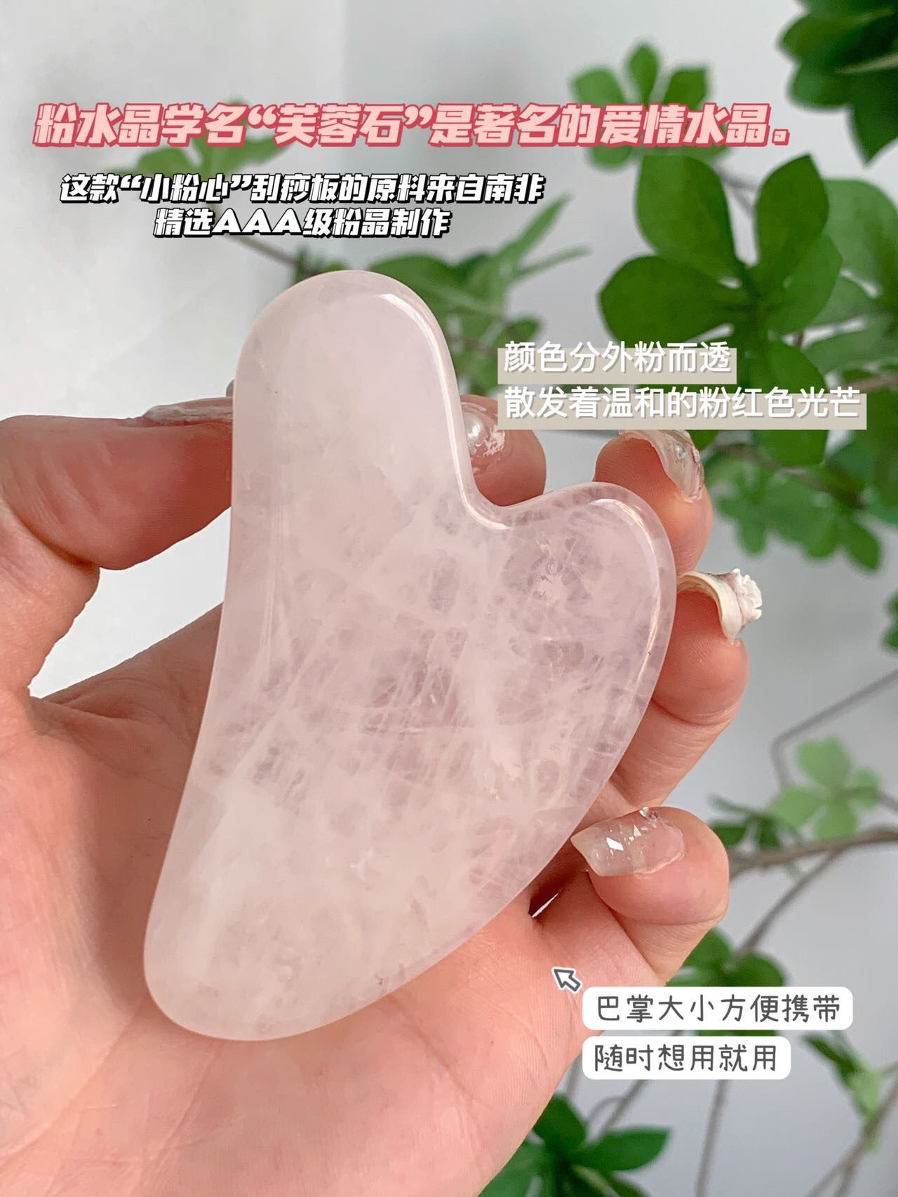触感冰凉 小粉心天然的粉晶刮板,刮痧仙女们的必备神器,搭配精油和护肤品使用,事半功倍~