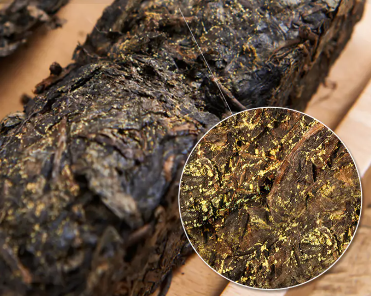 在加工过程中黑茶会产生一种独特的金黄色颗粒——金花,学名叫“冠突散囊菌”,是一种对人体非常有益的益生菌体。