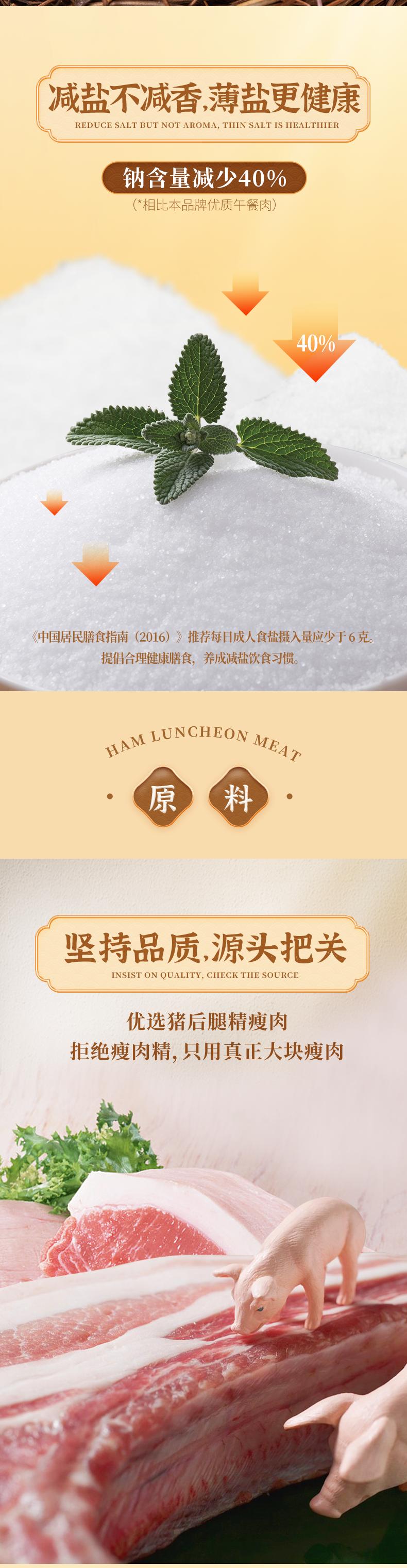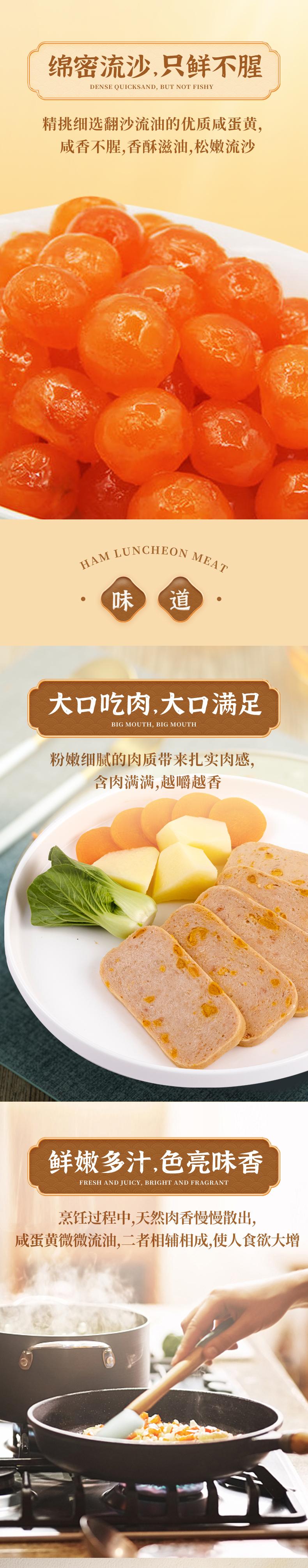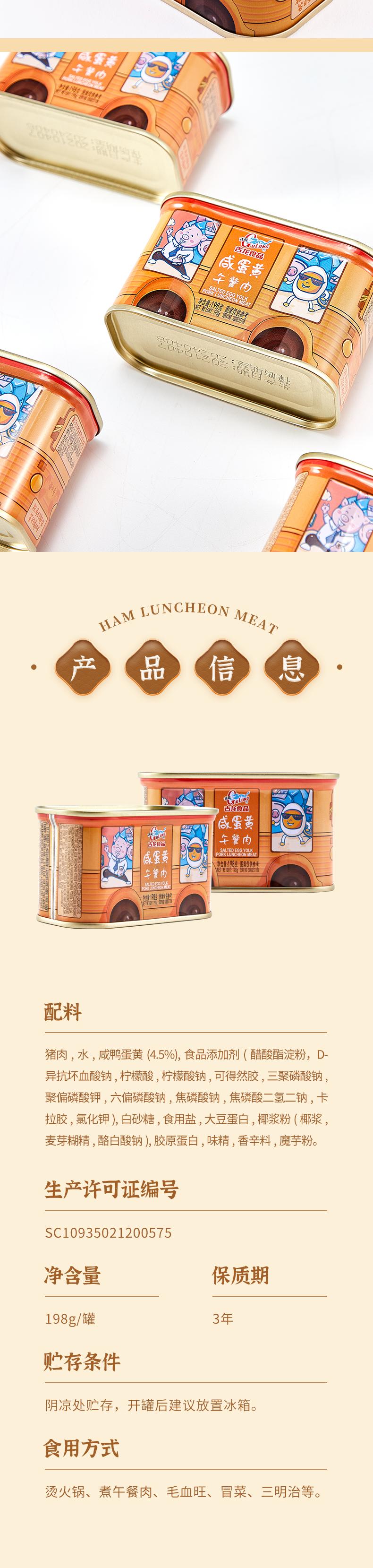 古龙食品猪肉午餐肉罐头即食咸蛋黄制品涮火锅早餐三明治火腿198g*3罐