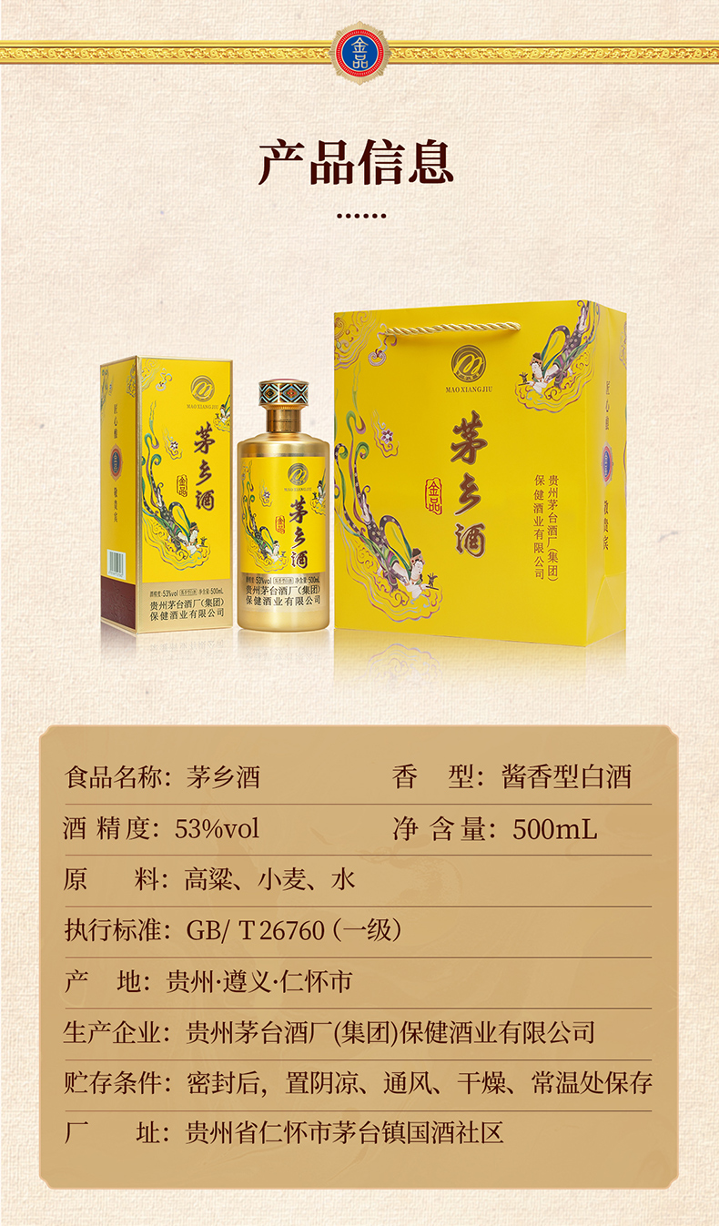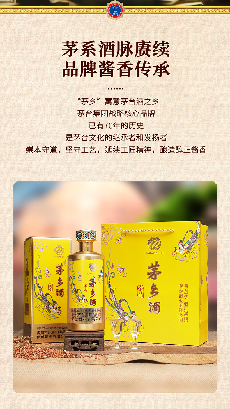 【自营】贵州茅台集团茅乡金品53度酱香型白酒500ml 礼盒装送礼宴请 53度 500mL 6瓶
