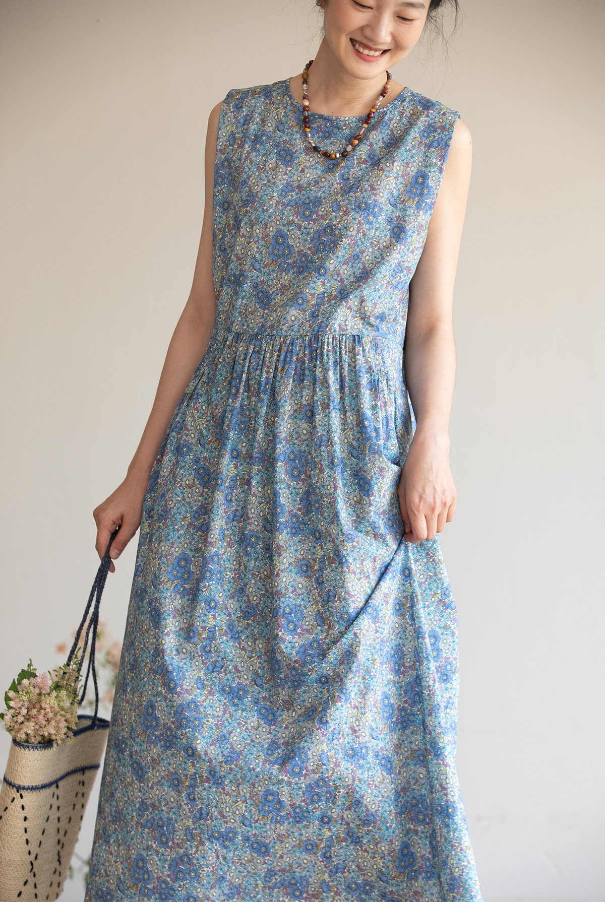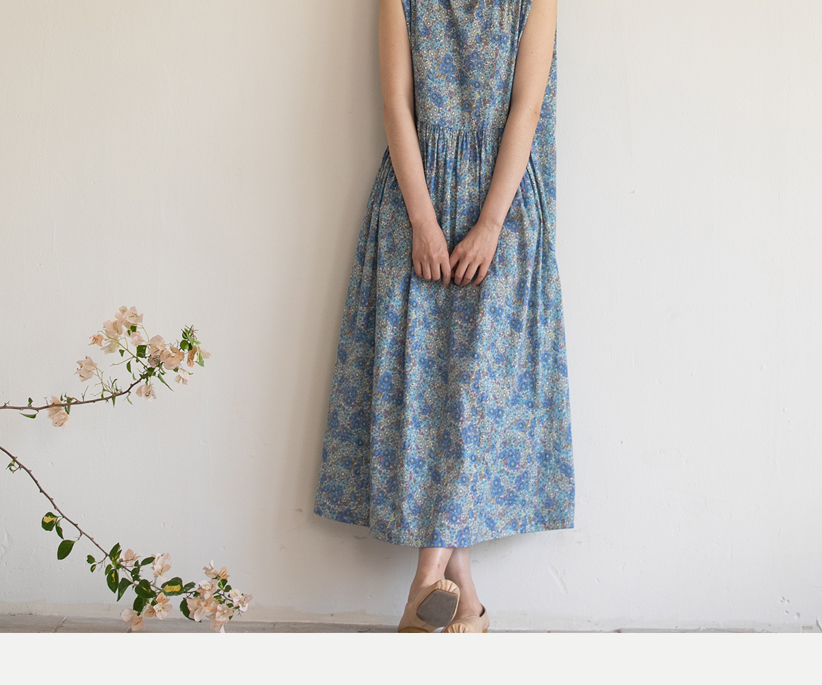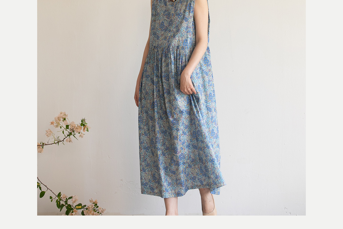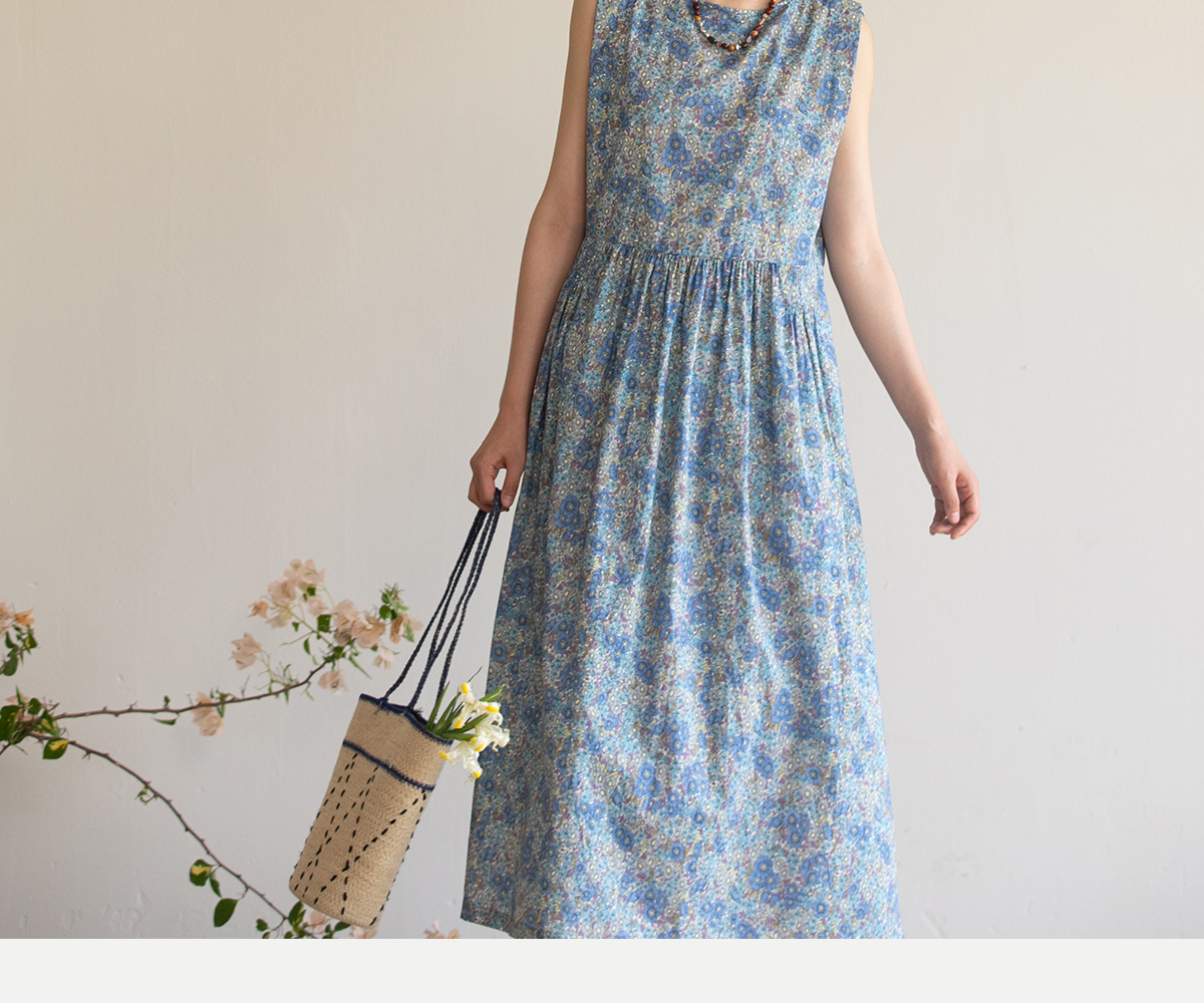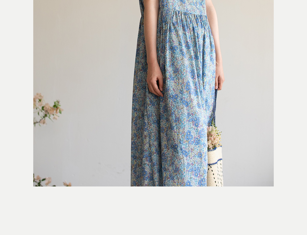 牧衣游原创 夏花印花纯棉连衣裙宽松文艺碎花无袖长裙 空山流水