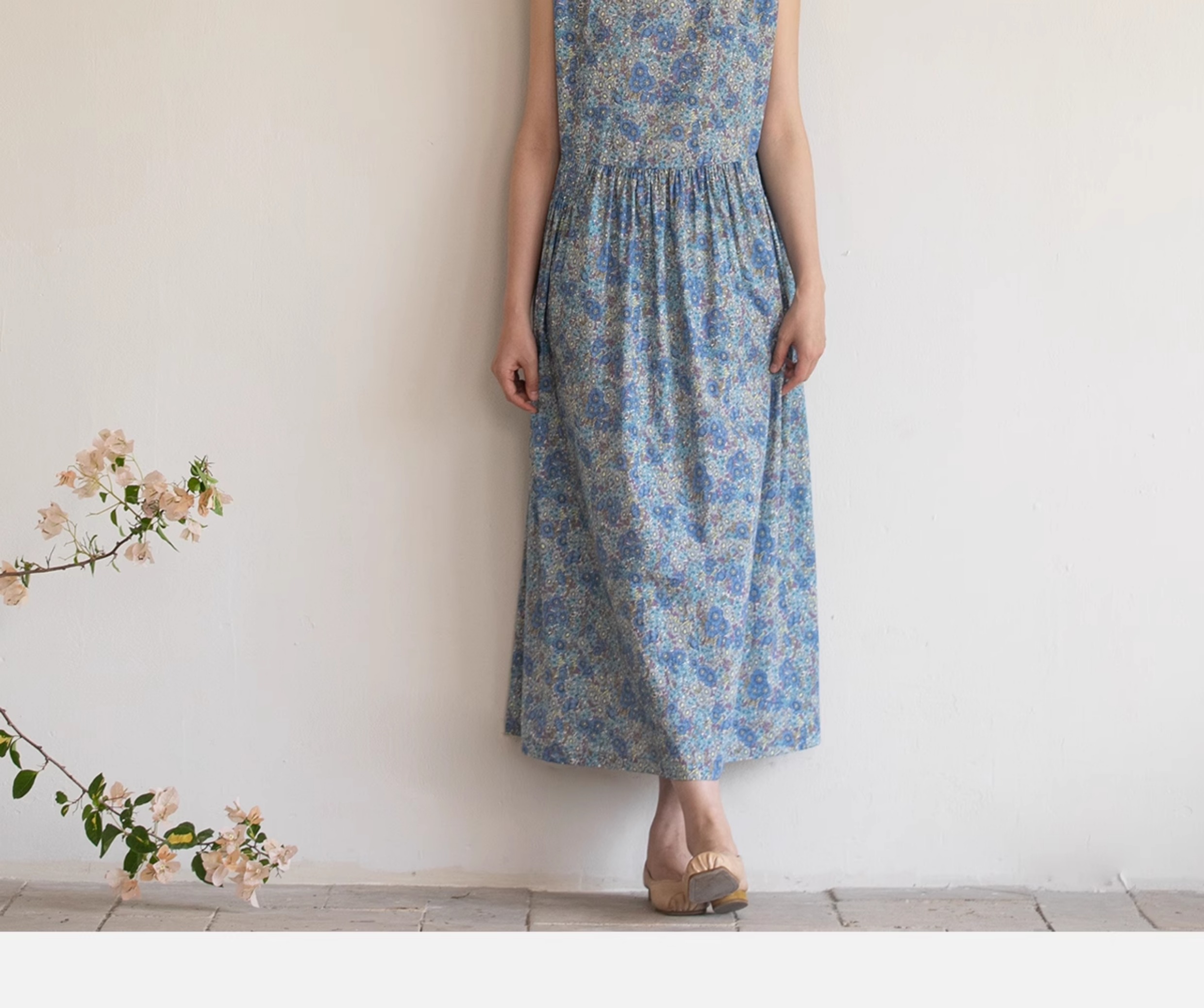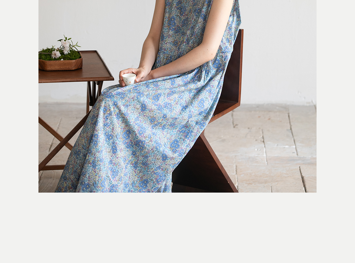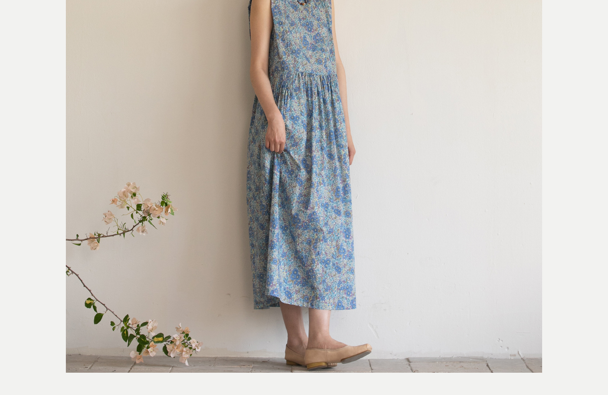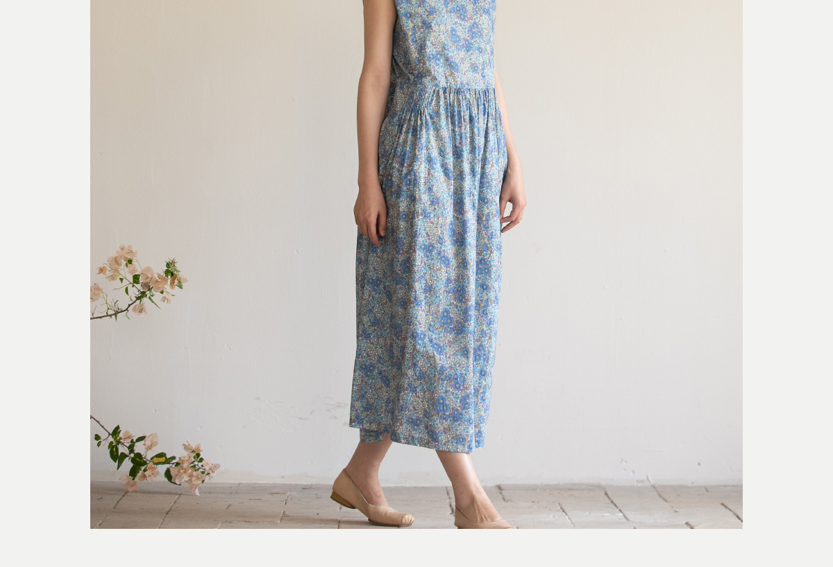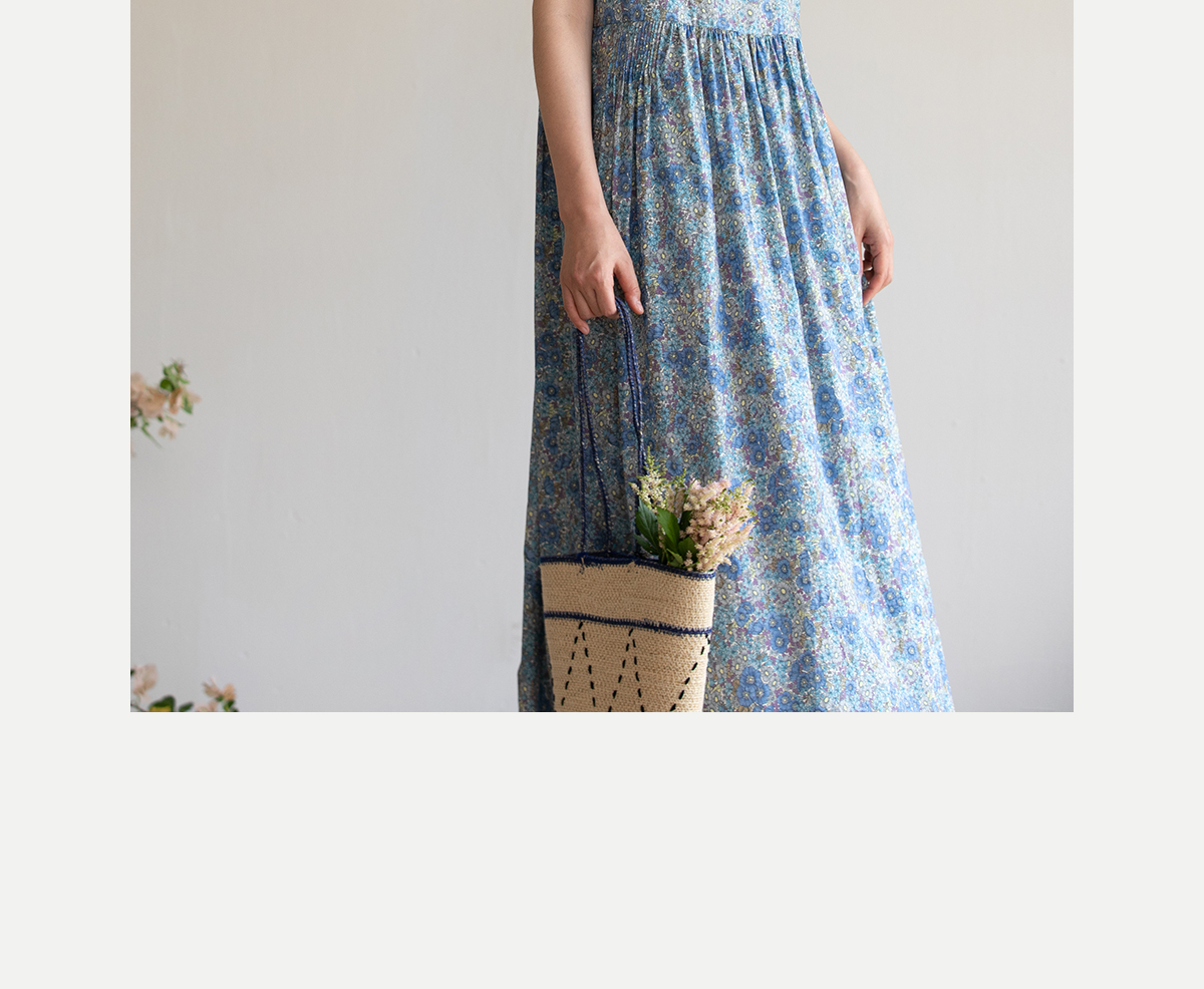 牧衣游原创 夏花印花纯棉连衣裙宽松文艺碎花无袖长裙 空山流水