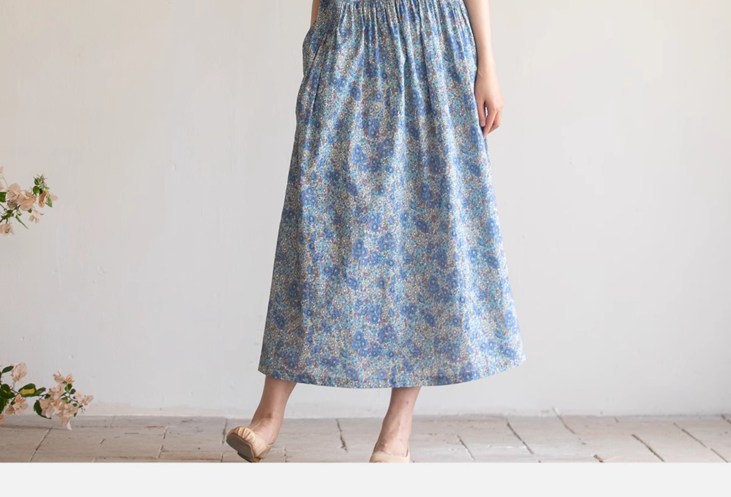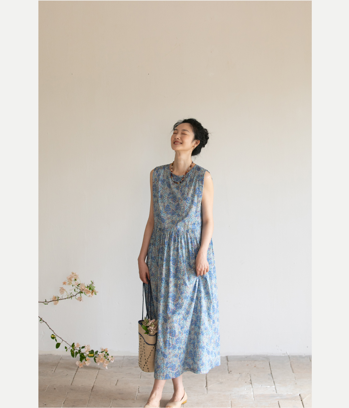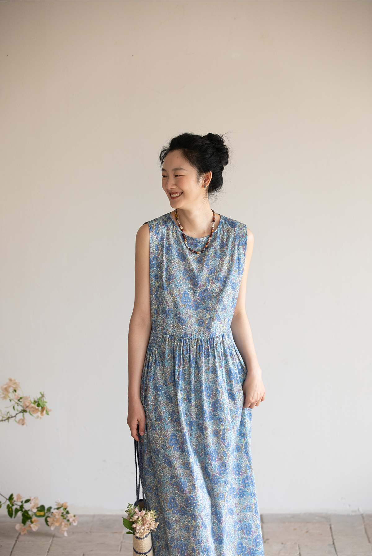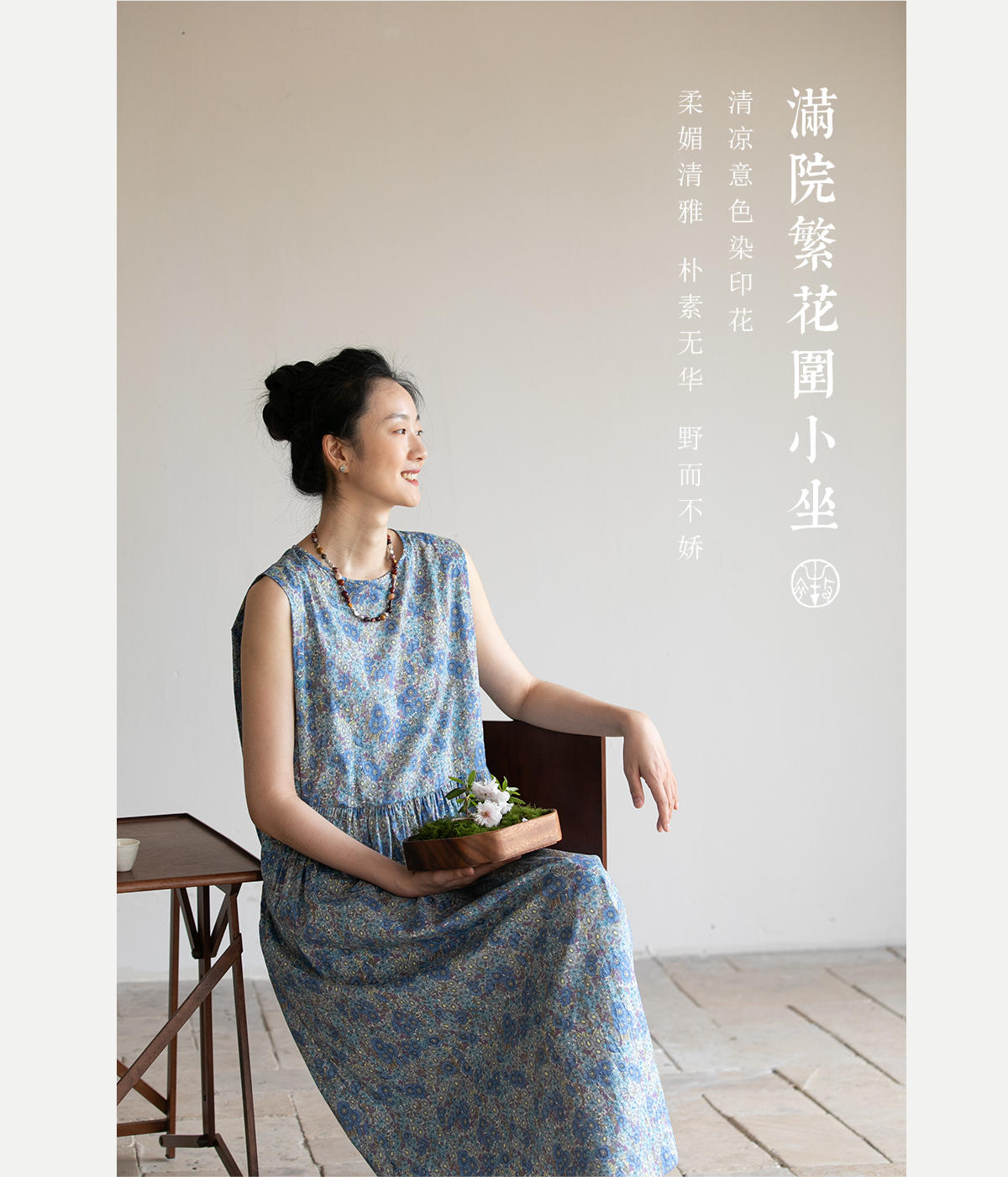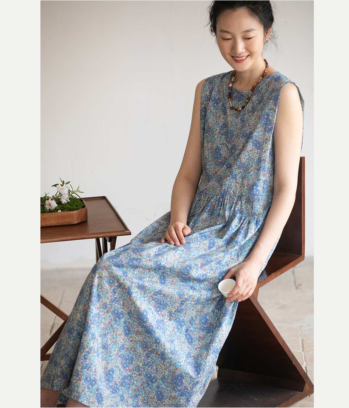 牧衣游原创 夏花印花纯棉连衣裙宽松文艺碎花无袖长裙 空山流水