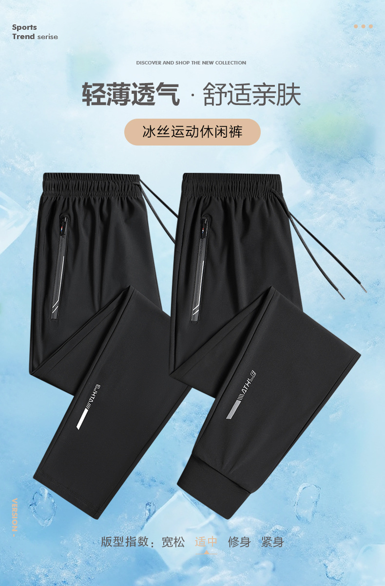 户外冰丝裤男超薄夏季男裤高弹力运动休闲裤速干丝滑冰爽直筒长裤 商品图0
