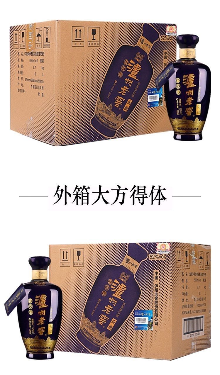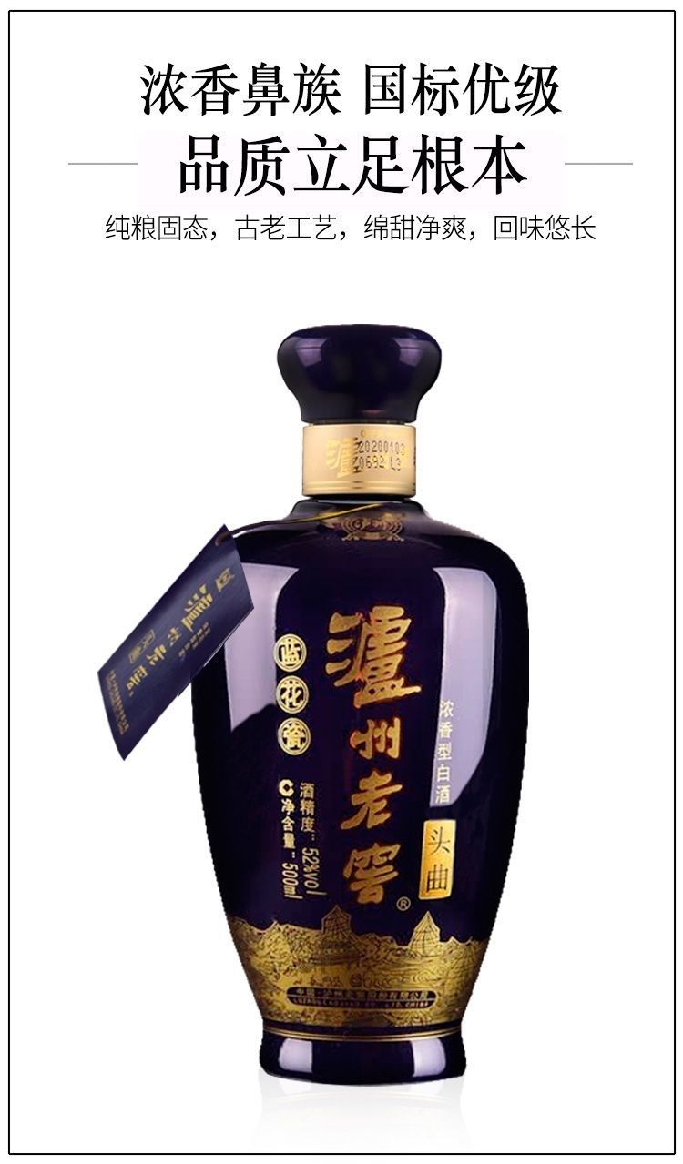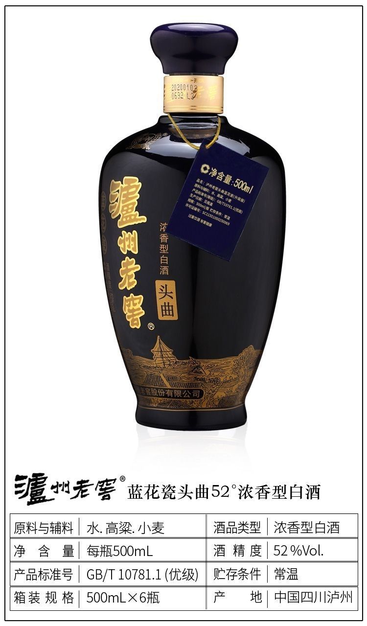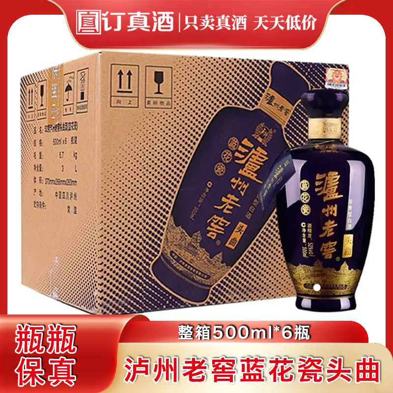 泸州老窖蓝花瓷头曲 52度浓香型白酒 整箱500ml*6瓶包邮