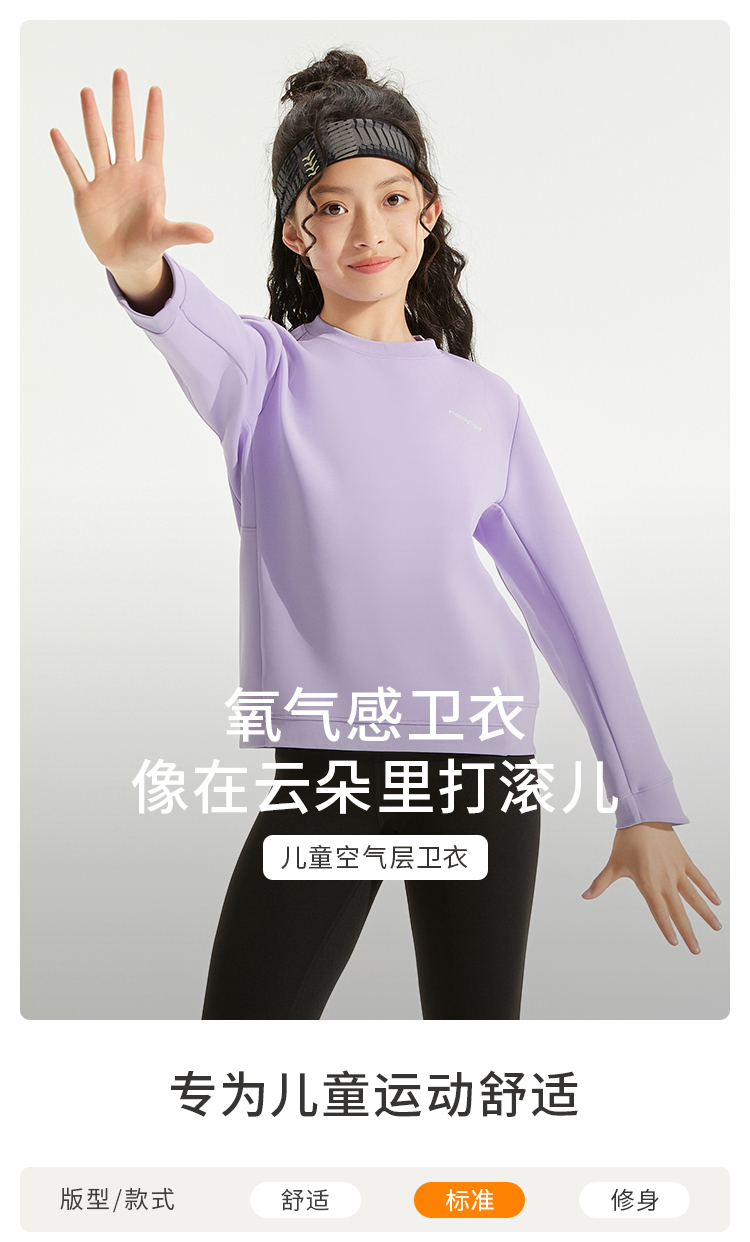 【24年秋新】moodytiger儿童卫衣24秋新款男女童长袖运动宽松圆领上衣43510305