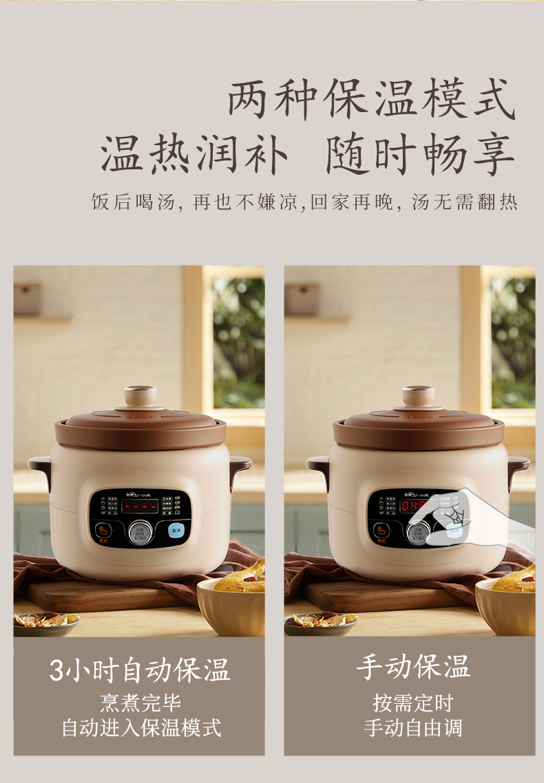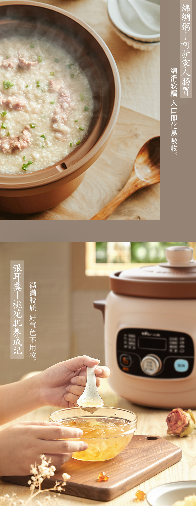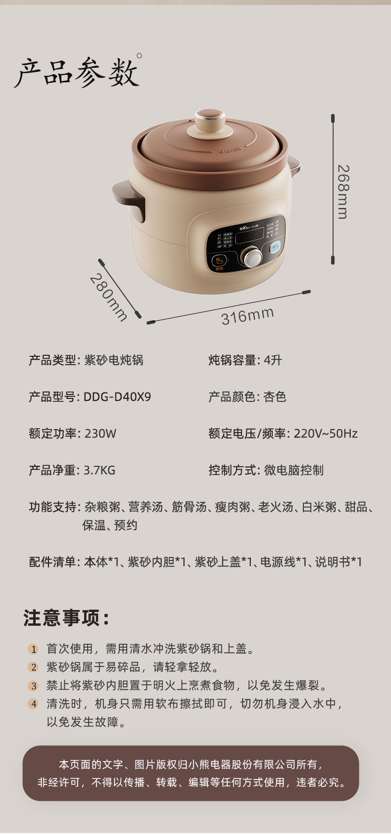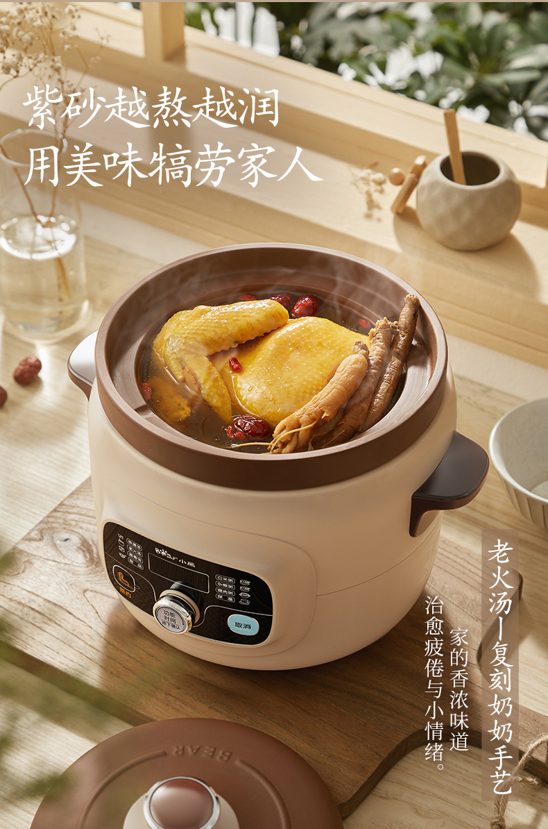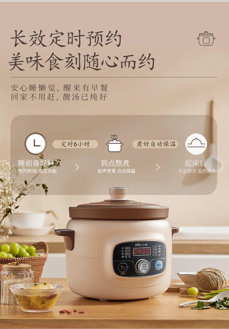 【清仓特惠5.5折,最后2个无货退款】小熊电炖锅紫砂锅炖盅煮粥煲汤米白色4L