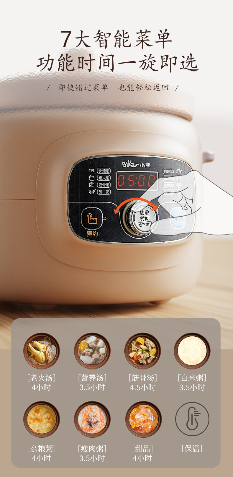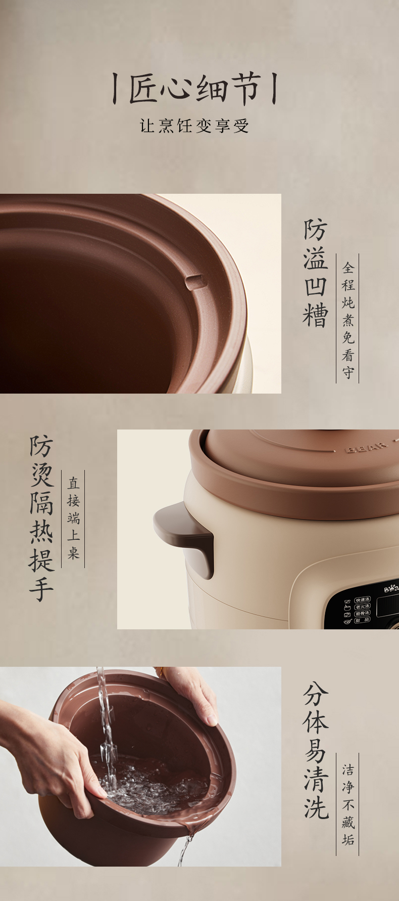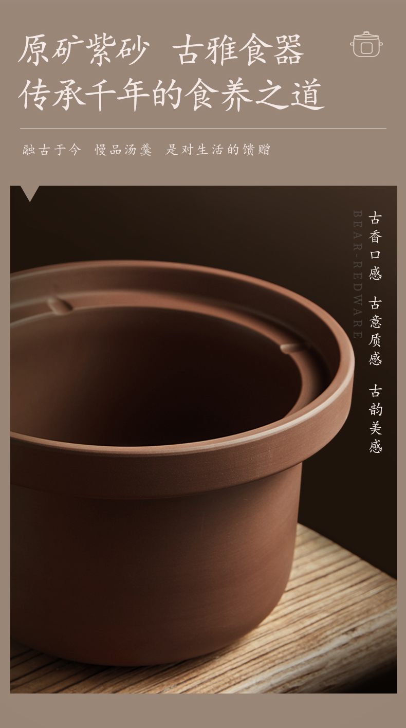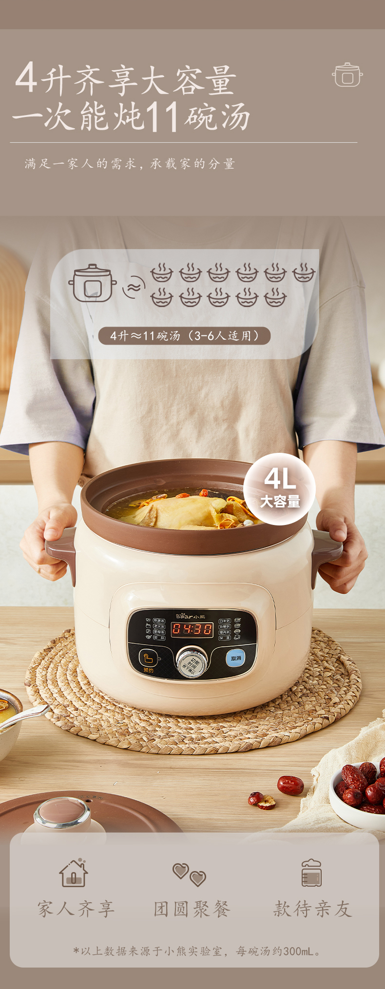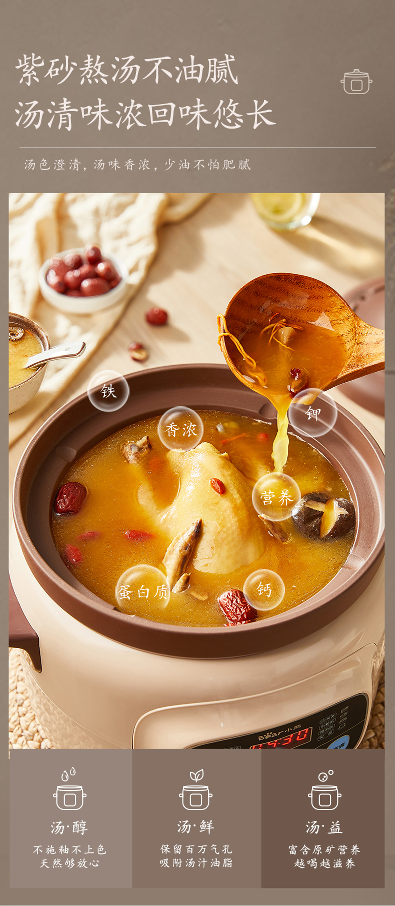 【清仓特惠5.5折,最后2个无货退款】小熊电炖锅紫砂锅炖盅煮粥煲汤米白色4L