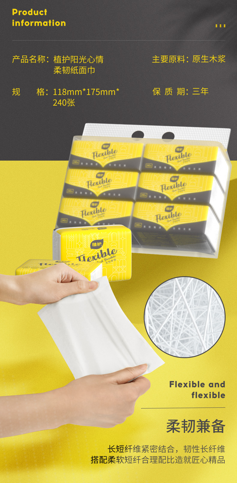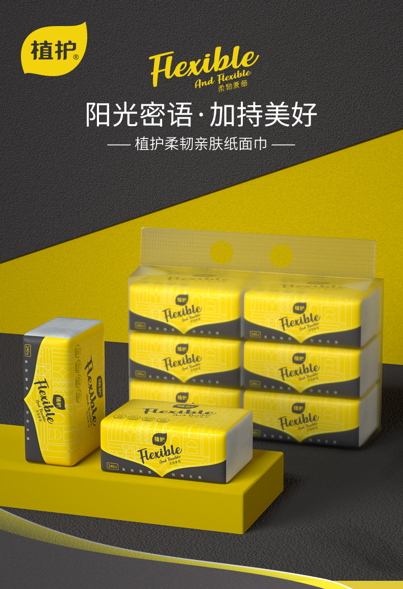 植护阳光心情柔韧纸面巾118*175mm/4层 60抽/包 6包*2提【XPTX】