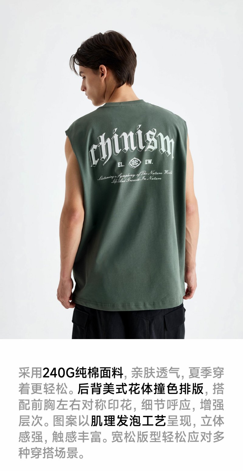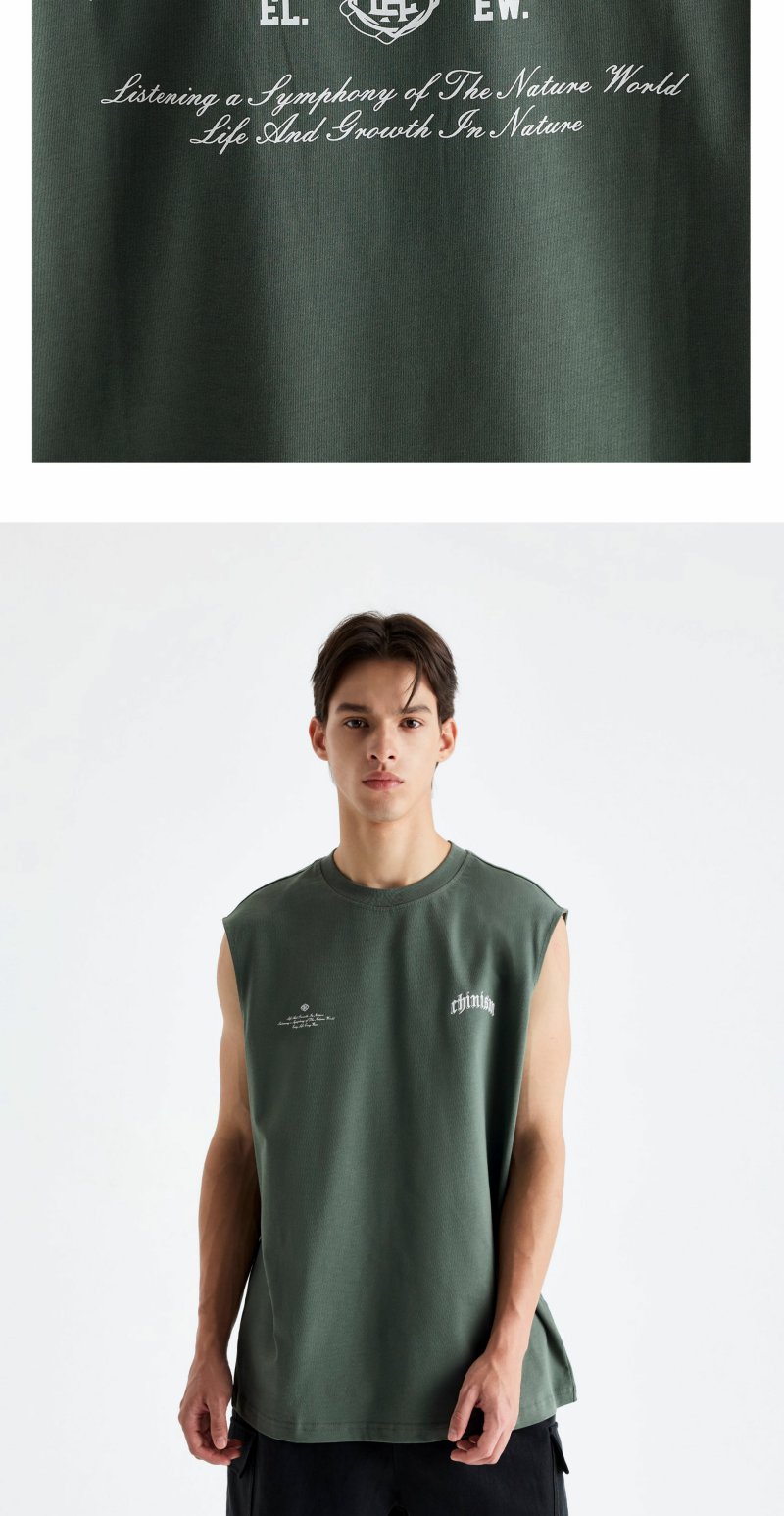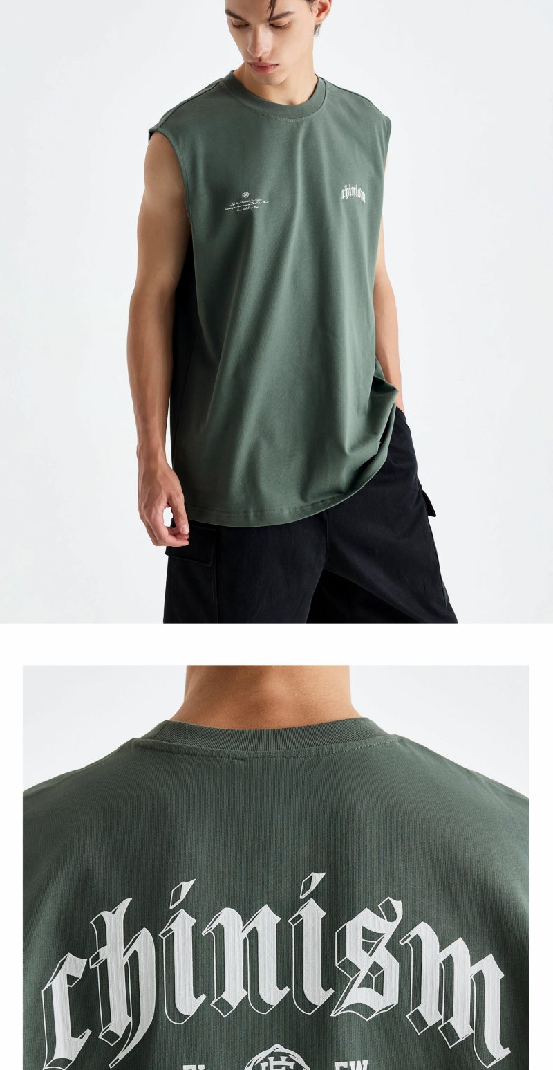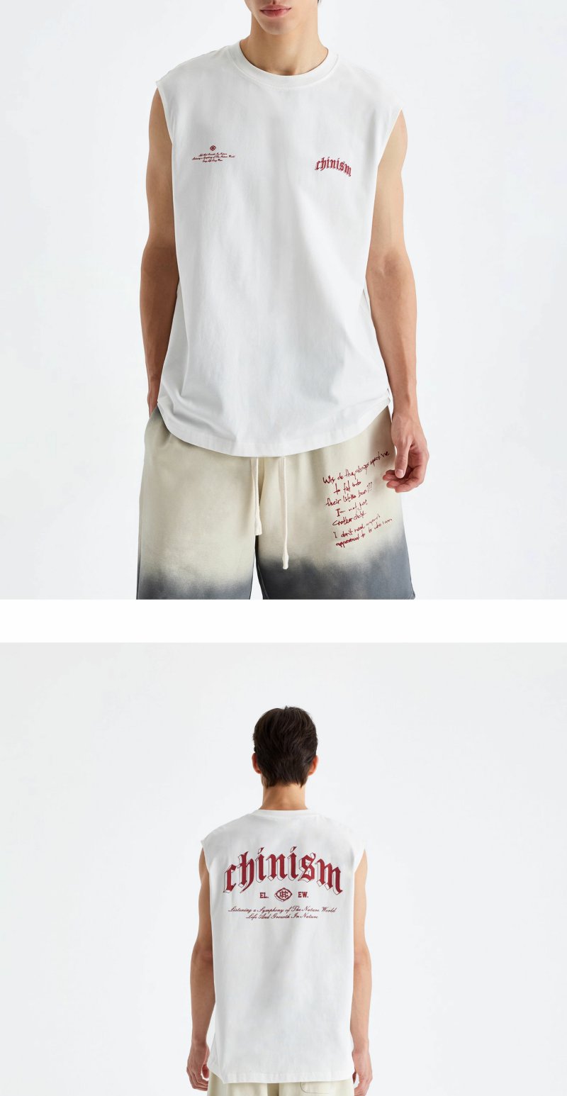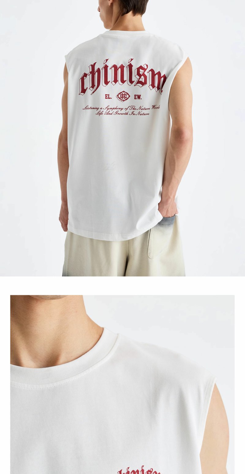 CHINISM赤尘 发泡印花白色背心男夏季新款美式轻薄运动无袖坎肩