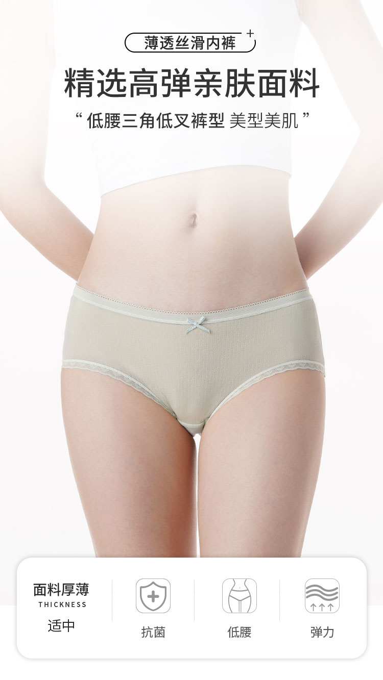都市丽人时尚系列薄透丝滑锦泳提花三角低叉女士内裤LK253A