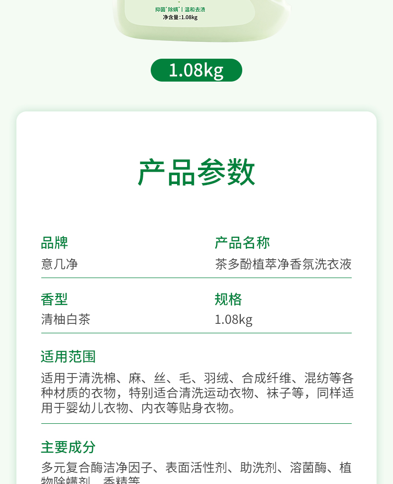 【自营】意几净茶多酚植萃净香氛洗衣液-清柚白茶1.08kg