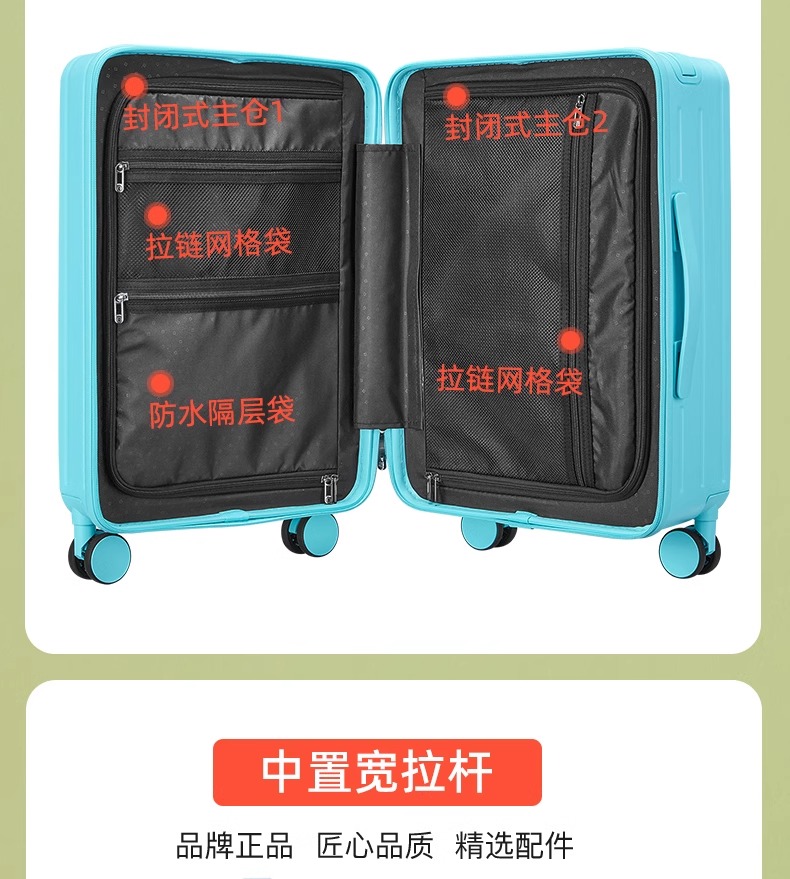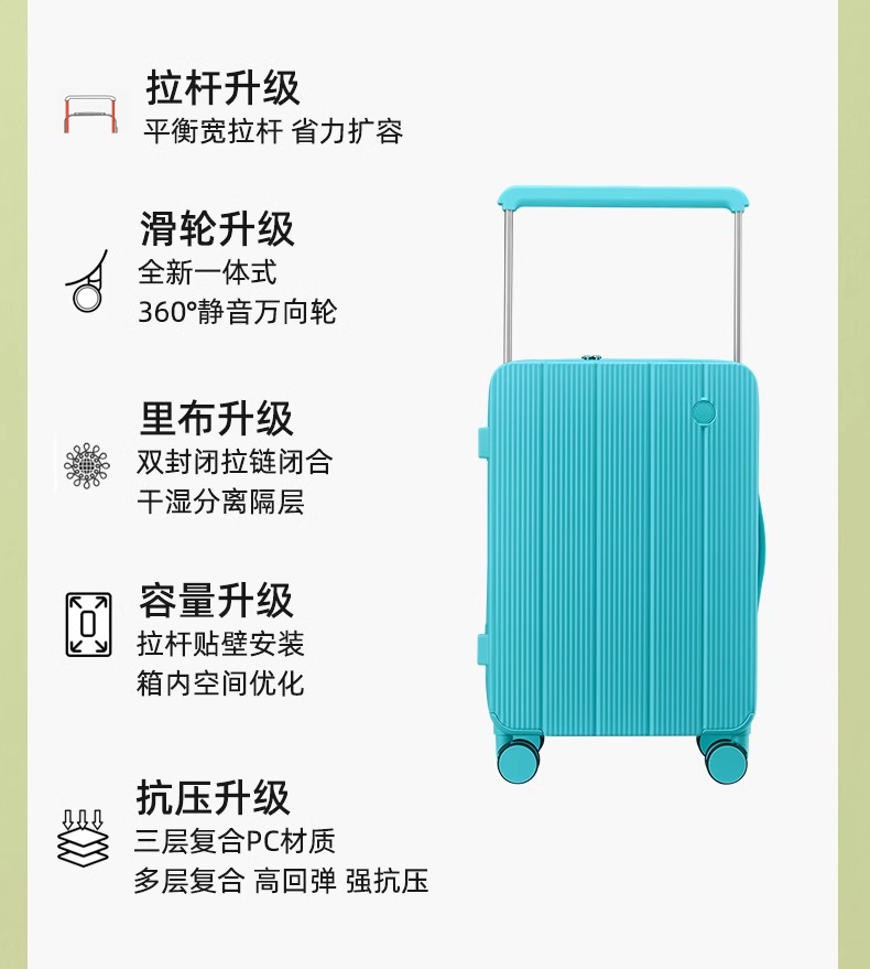 自然醒中置宽拉杆行李箱女新款小型轻便旅行皮箱20寸登机密码箱子男SY