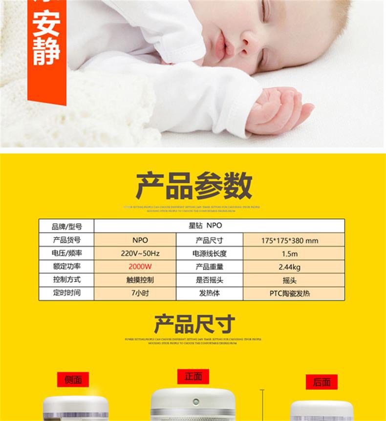 星钻取暖器家用节能全屋热风机小型暖风机省电速热暖气电暖器NPO