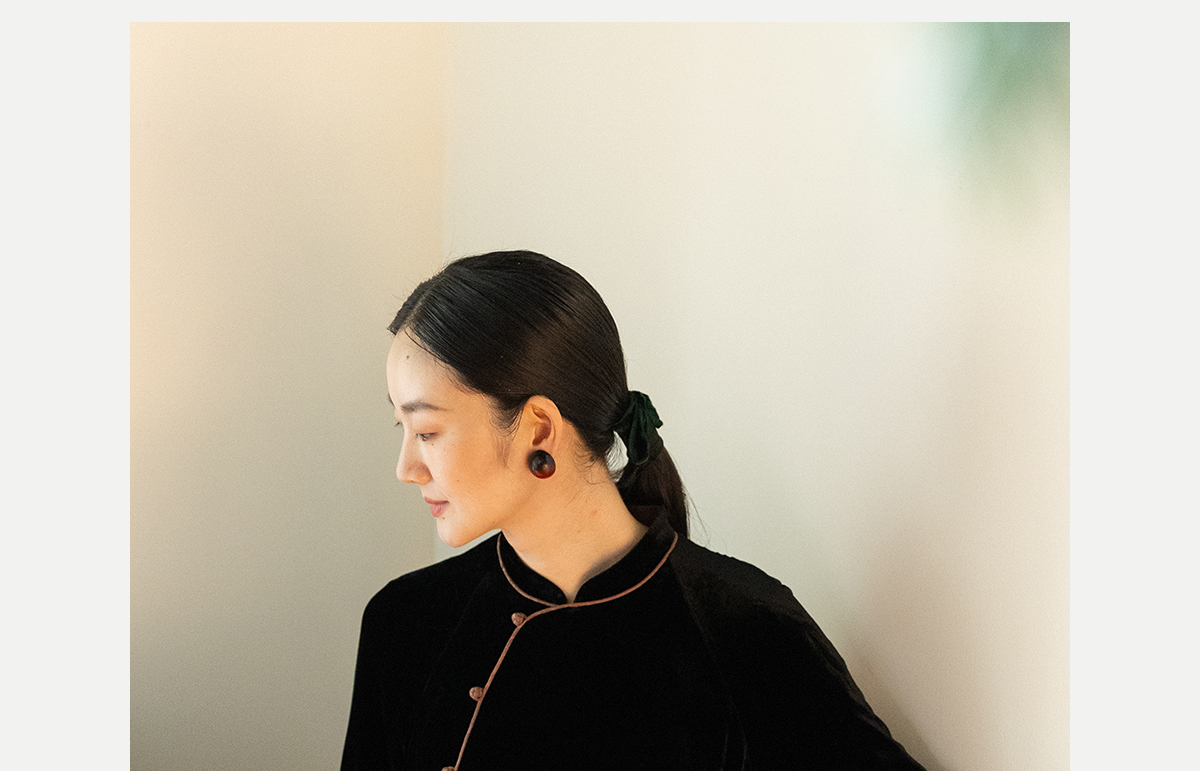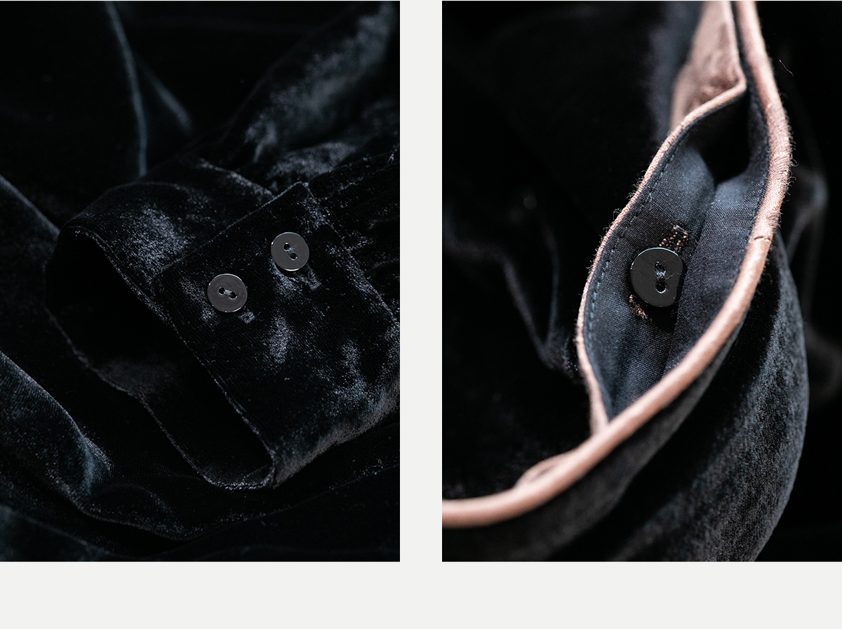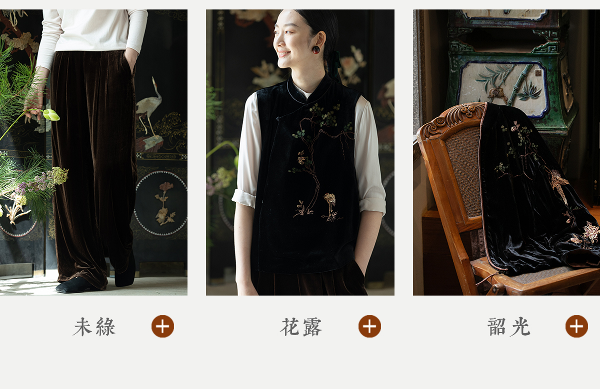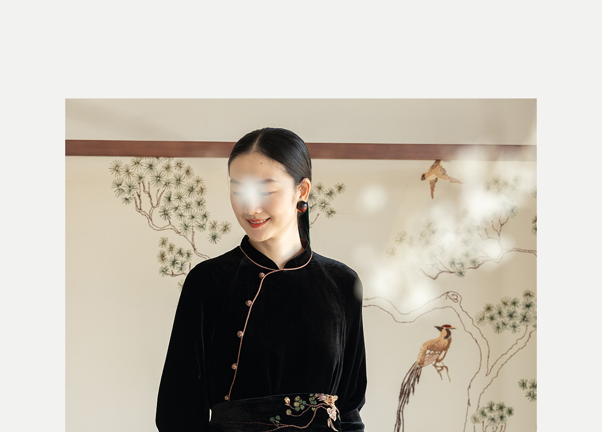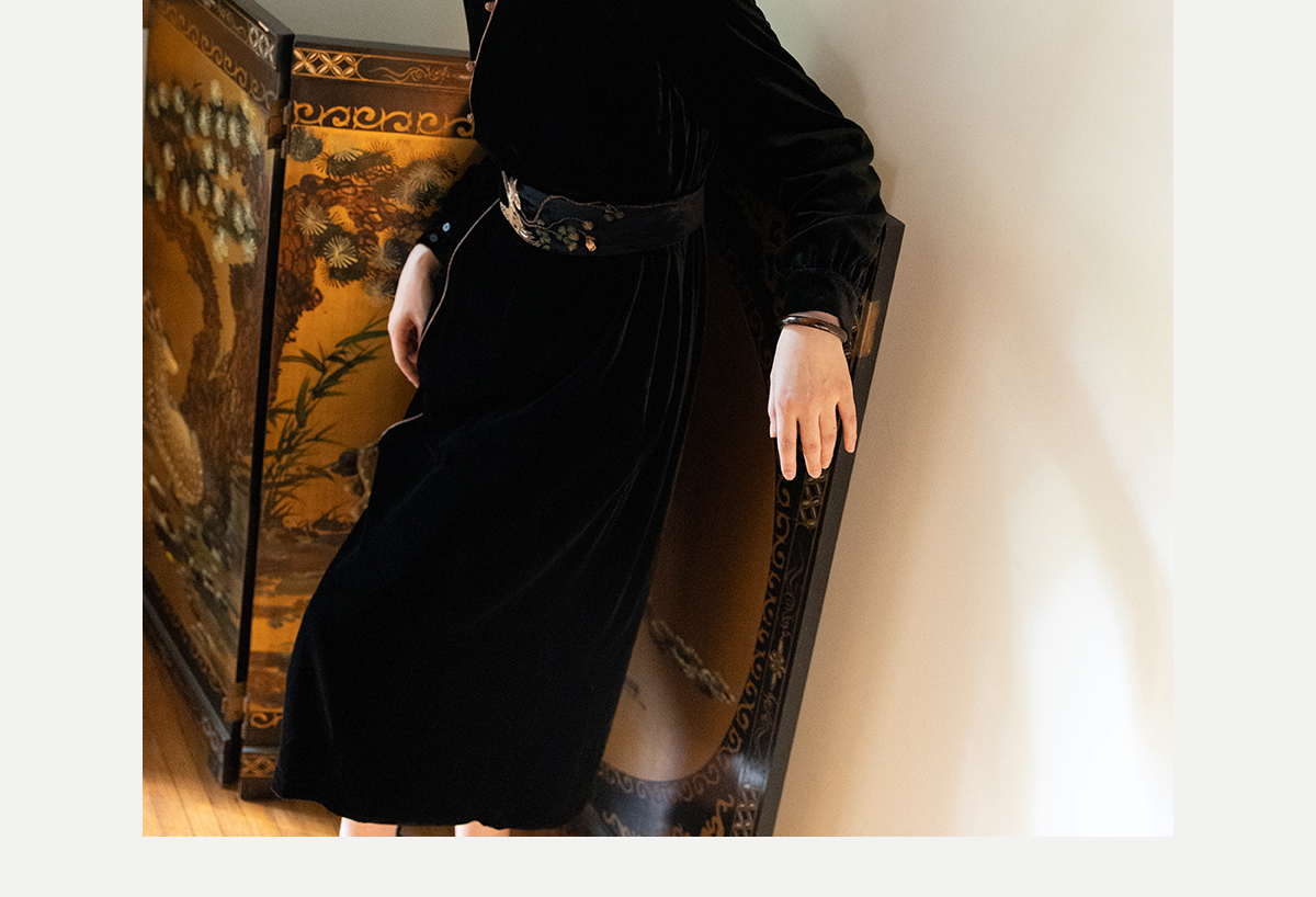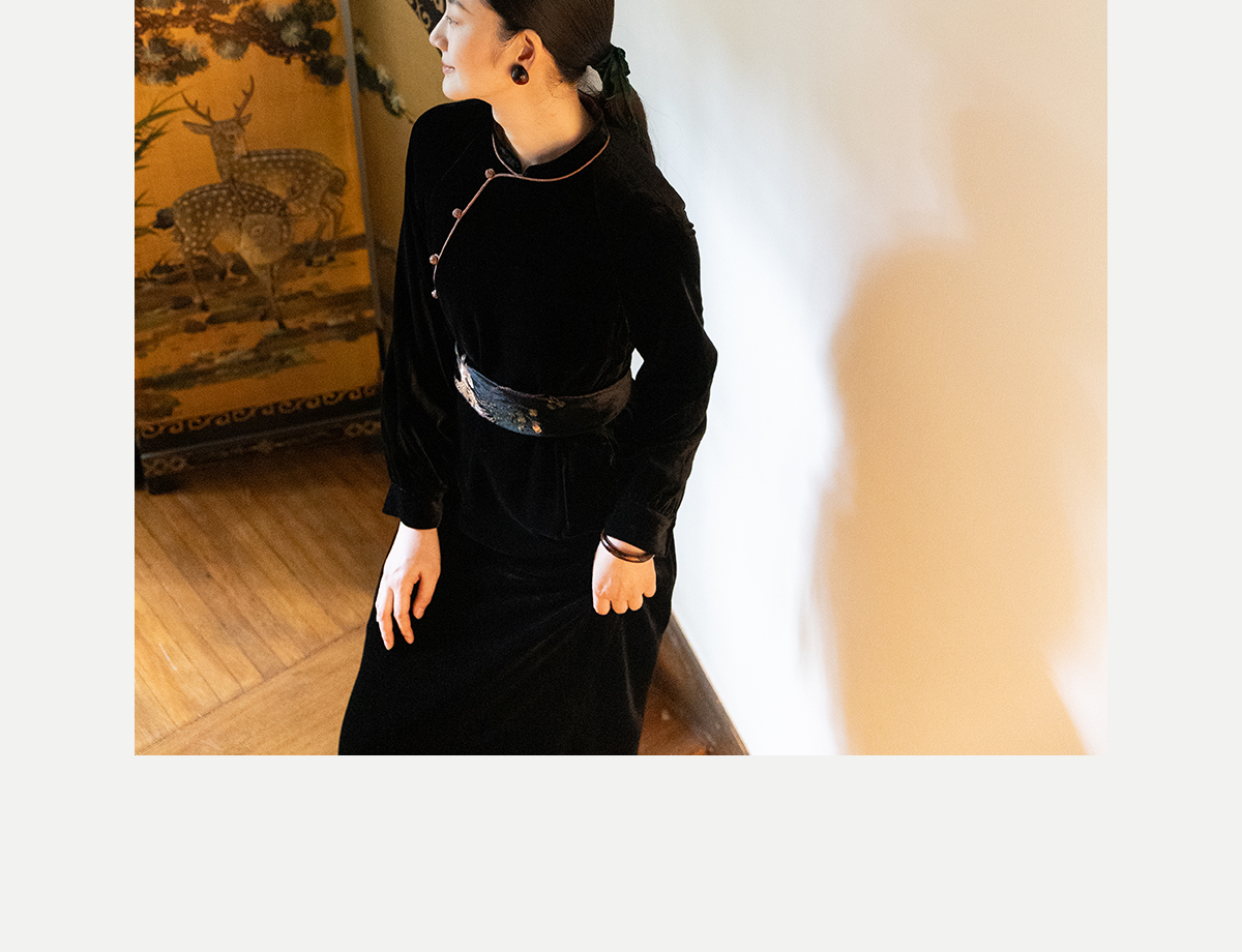 牧衣游原创 丝绒净色连衣裙秋季新款复古立领气质新中式长裙 庭雨