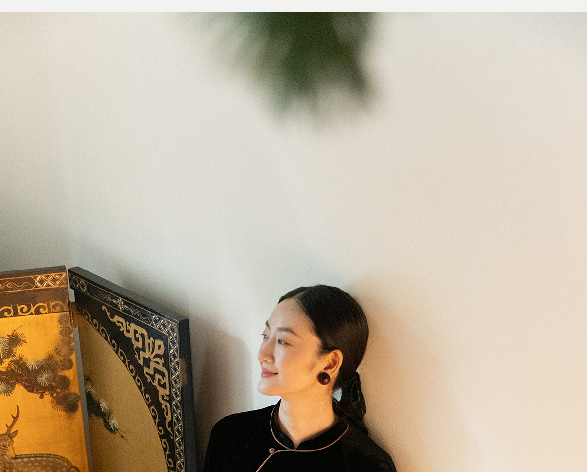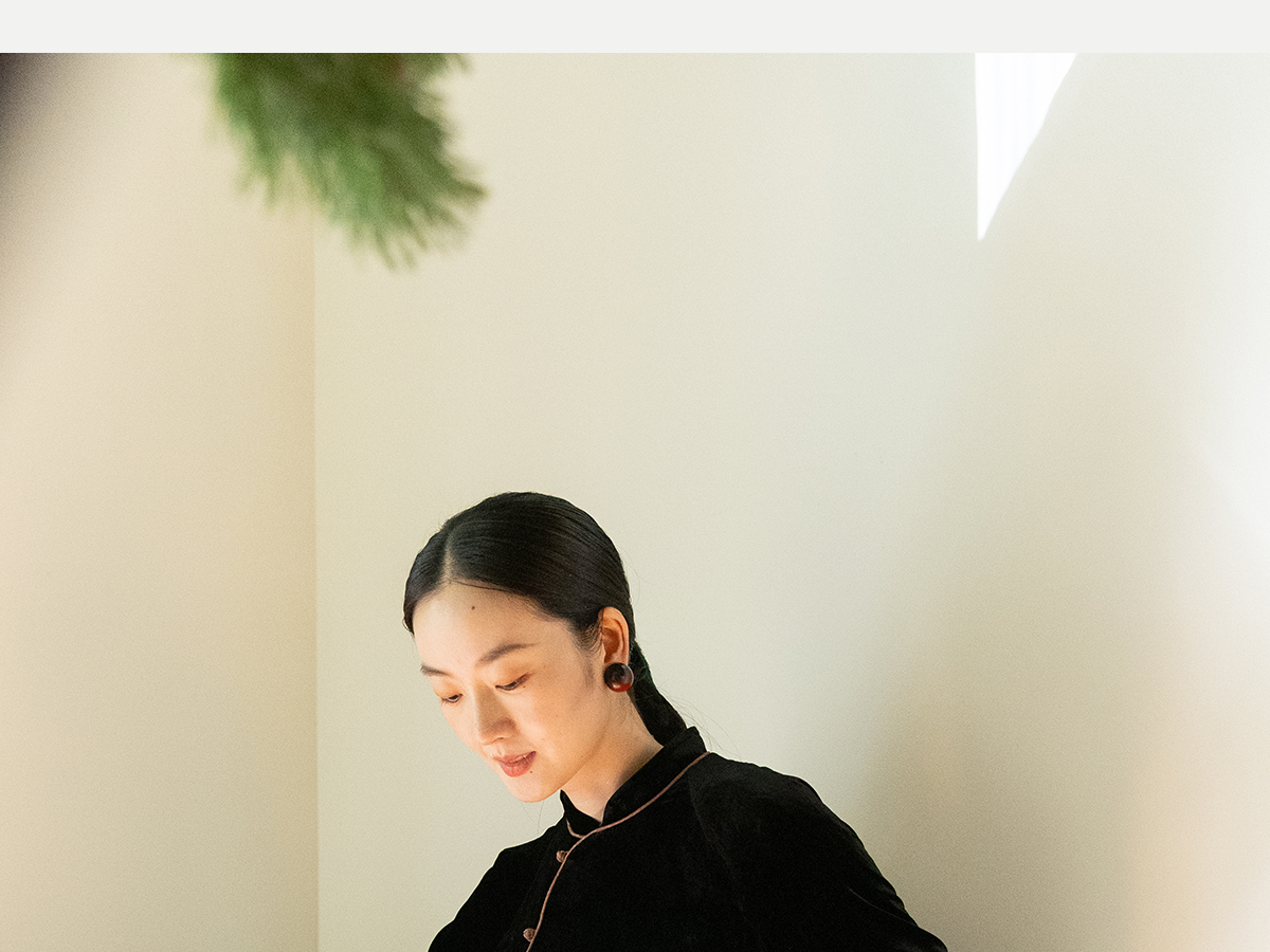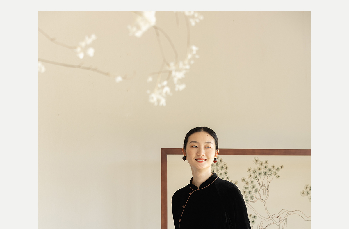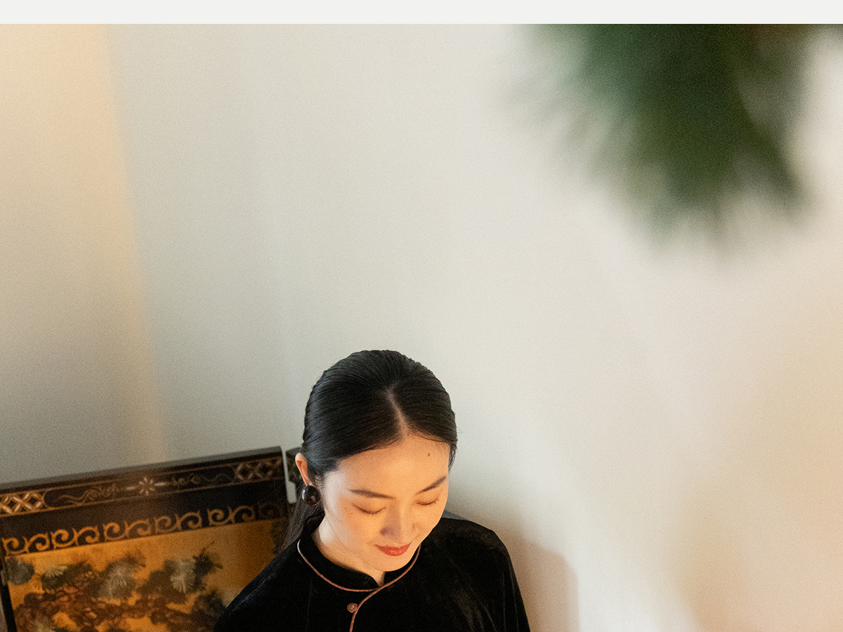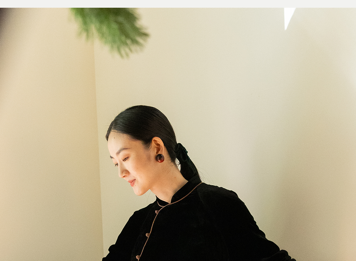 牧衣游原创 丝绒净色连衣裙秋季新款复古立领气质新中式长裙 庭雨