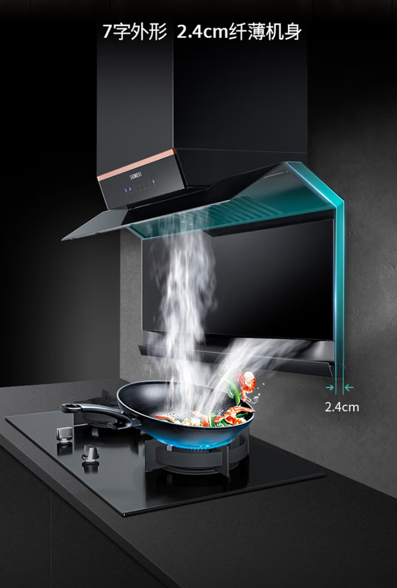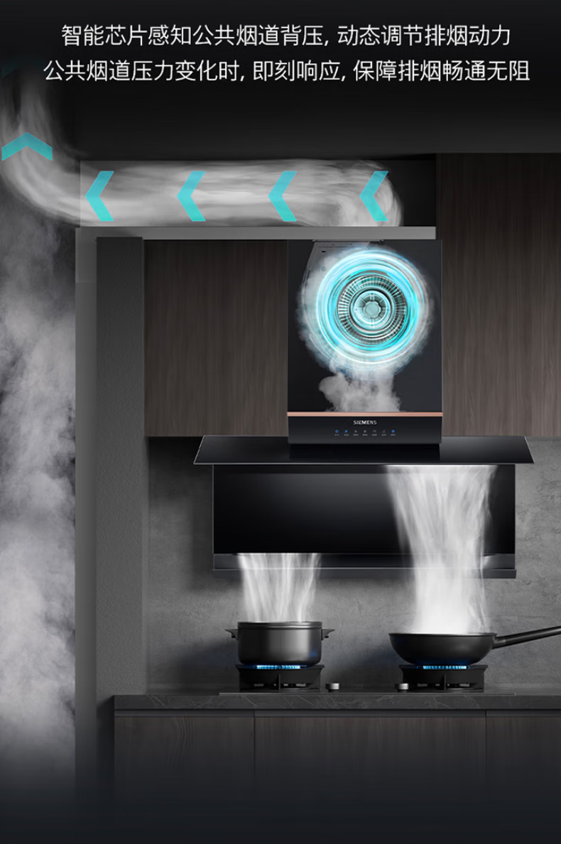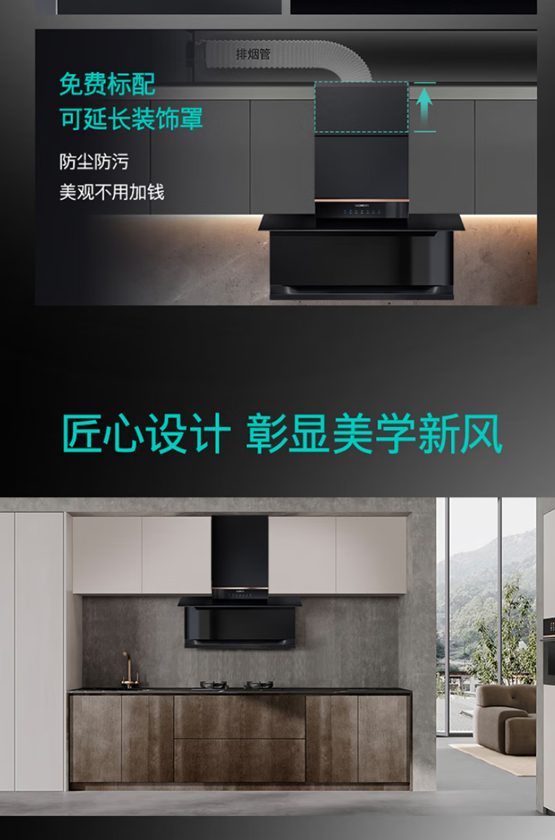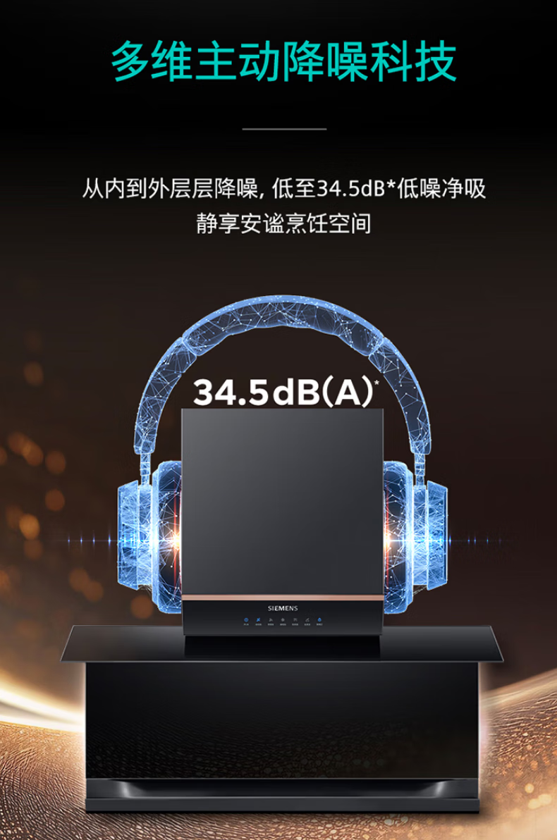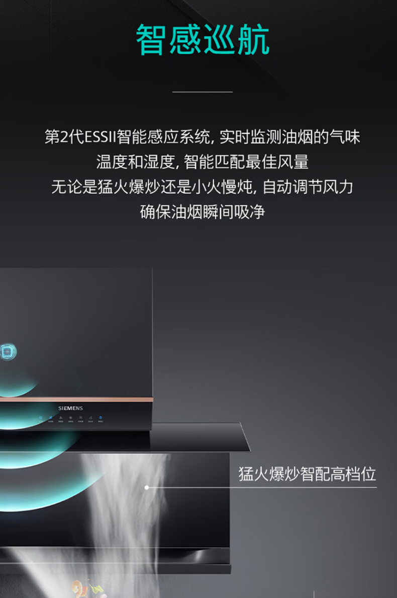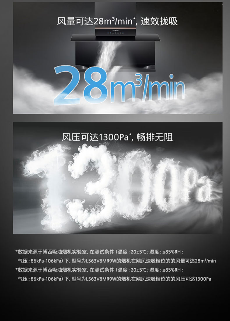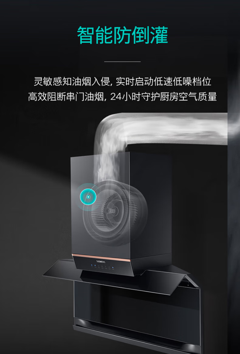 西门子(SIEMENS)【新品上市】玫瑰金顶侧双吸油烟机 28立方大吸力 智能风速调节 智能自清洁 德系变频电机 LS63V8MR9W