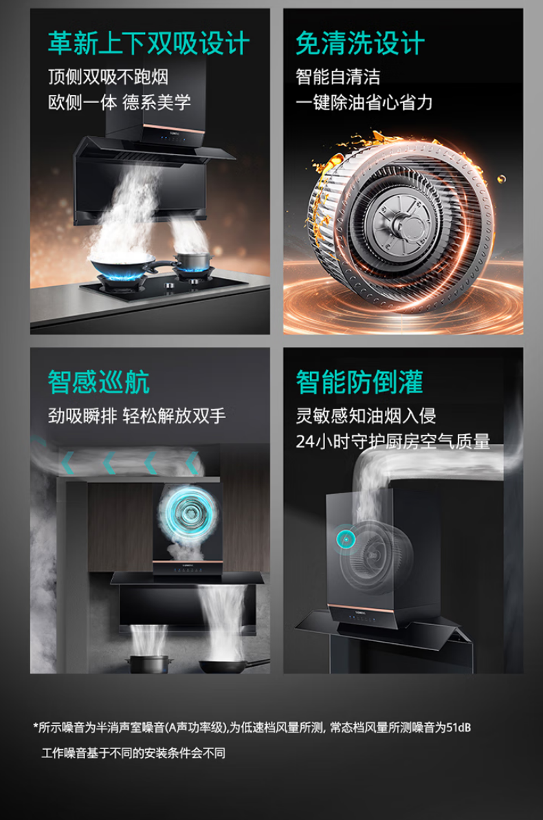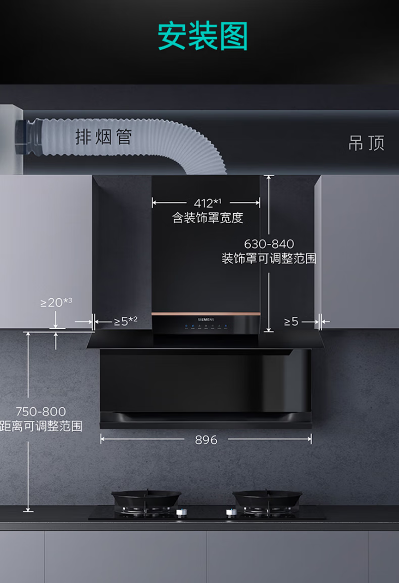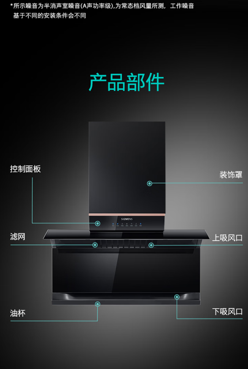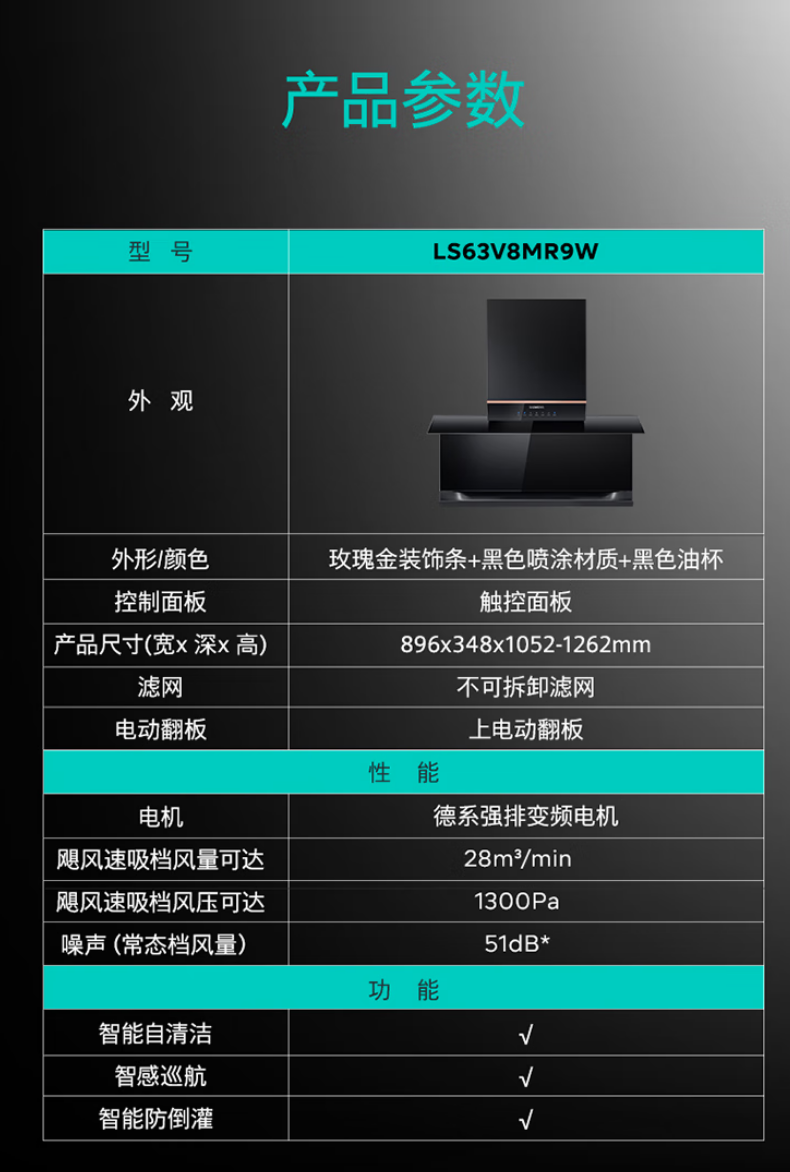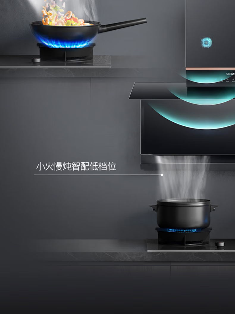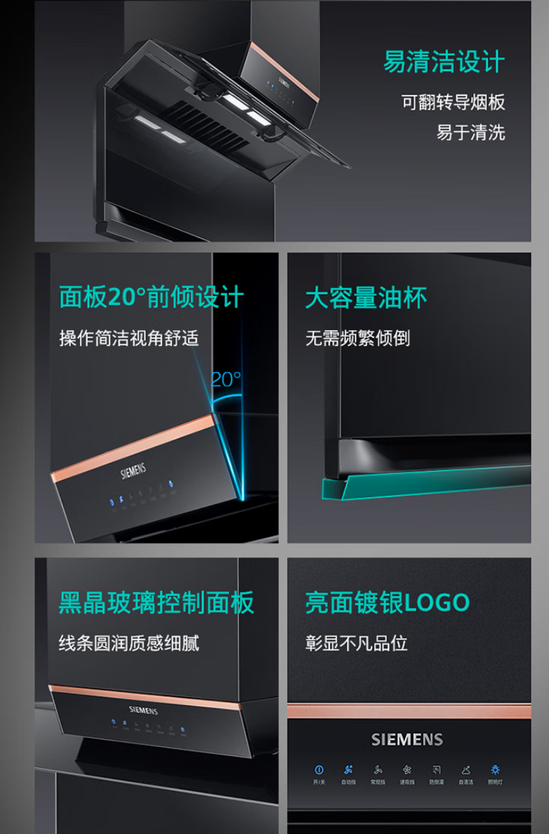 西门子(SIEMENS)【新品上市】玫瑰金顶侧双吸油烟机 28立方大吸力 智能风速调节 智能自清洁 德系变频电机 LS63V8MR9W
