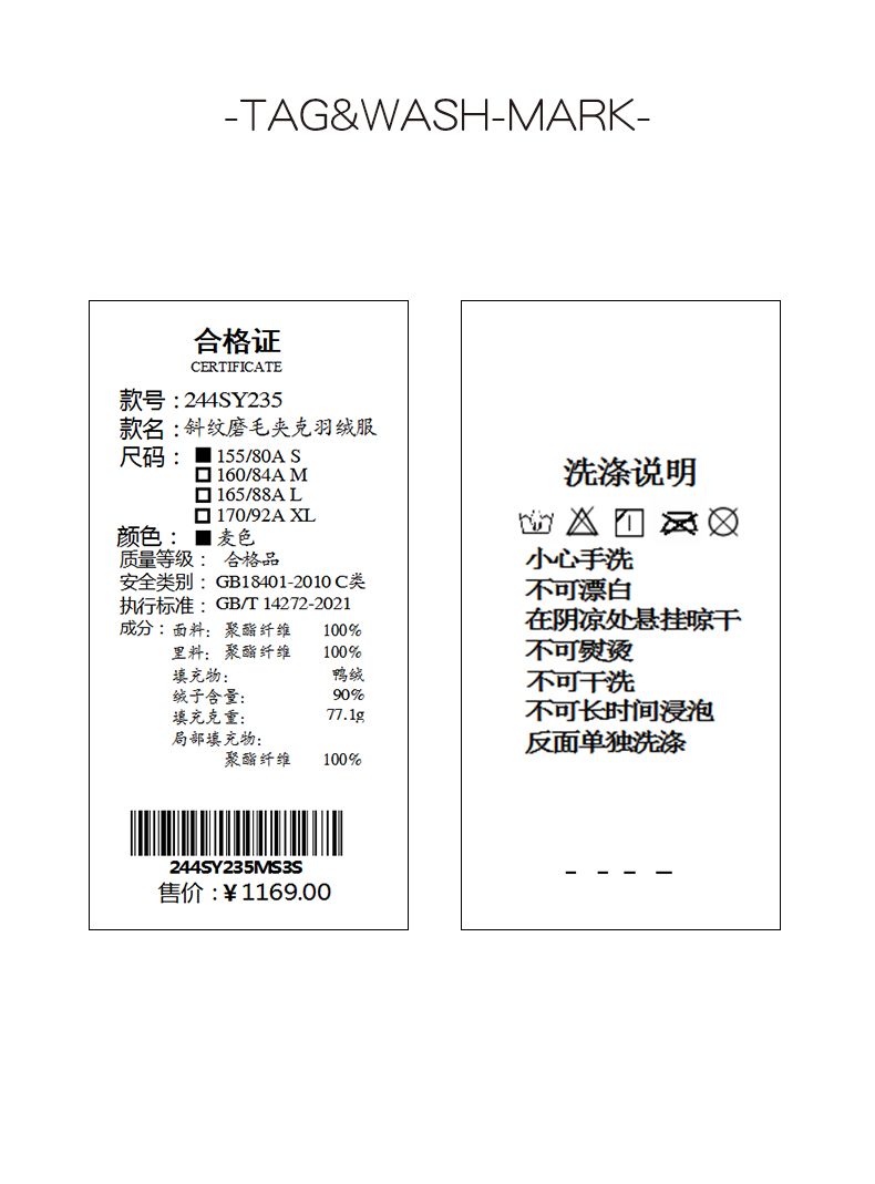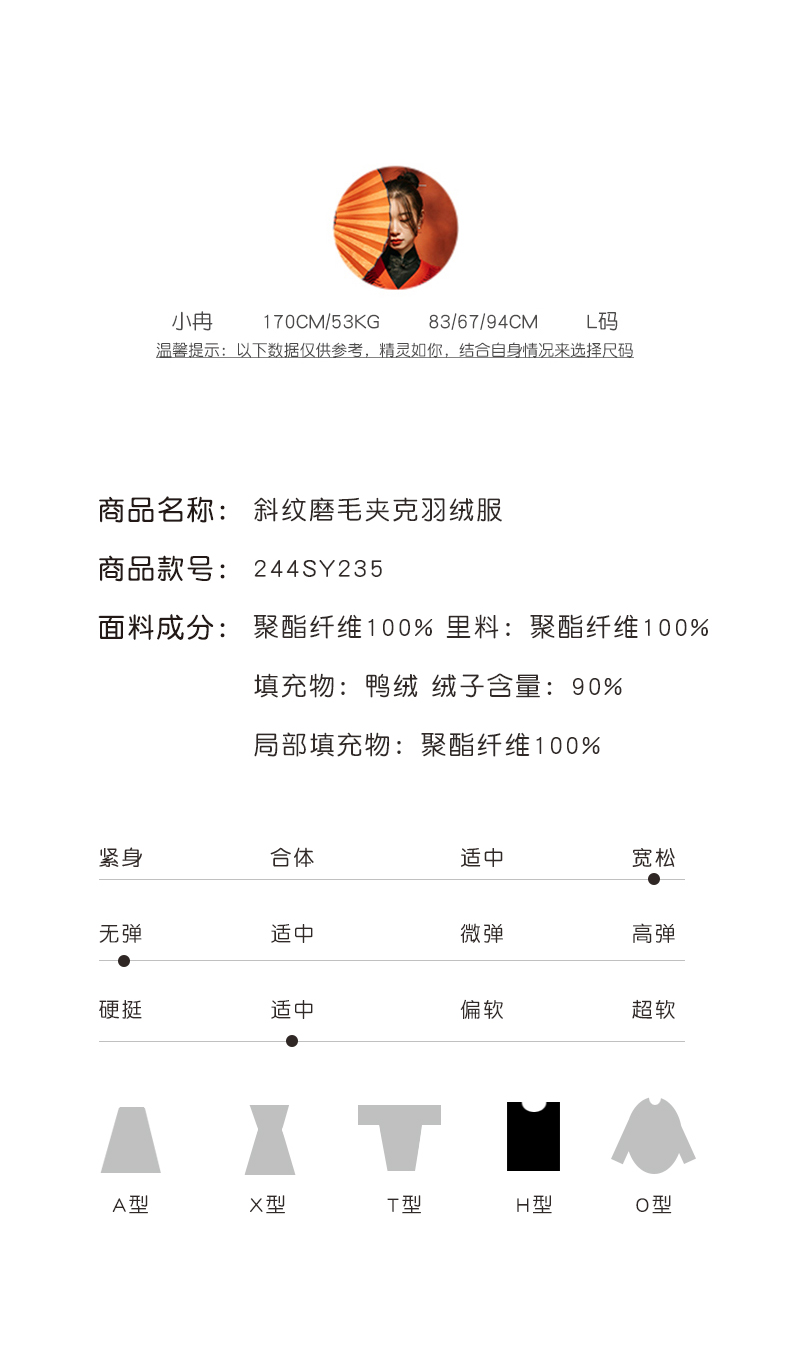 XIAOYU|斜纹磨毛夹克羽绒服244SY235