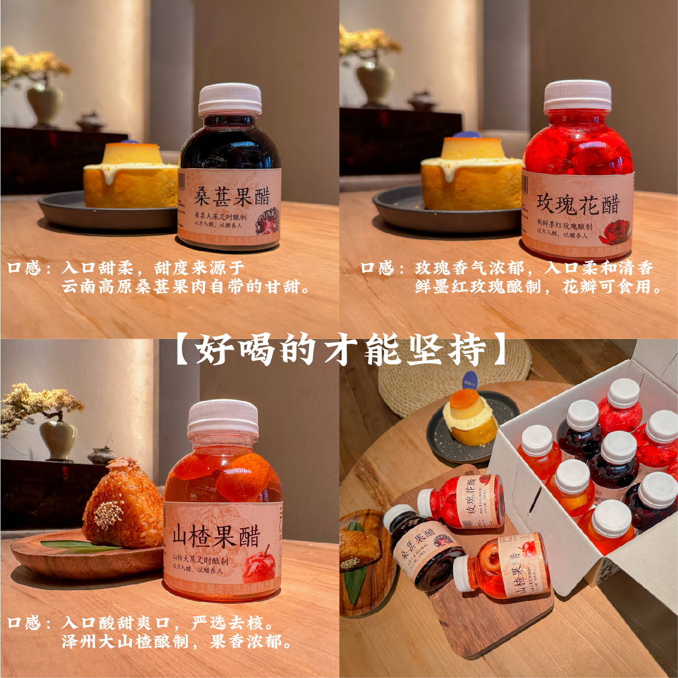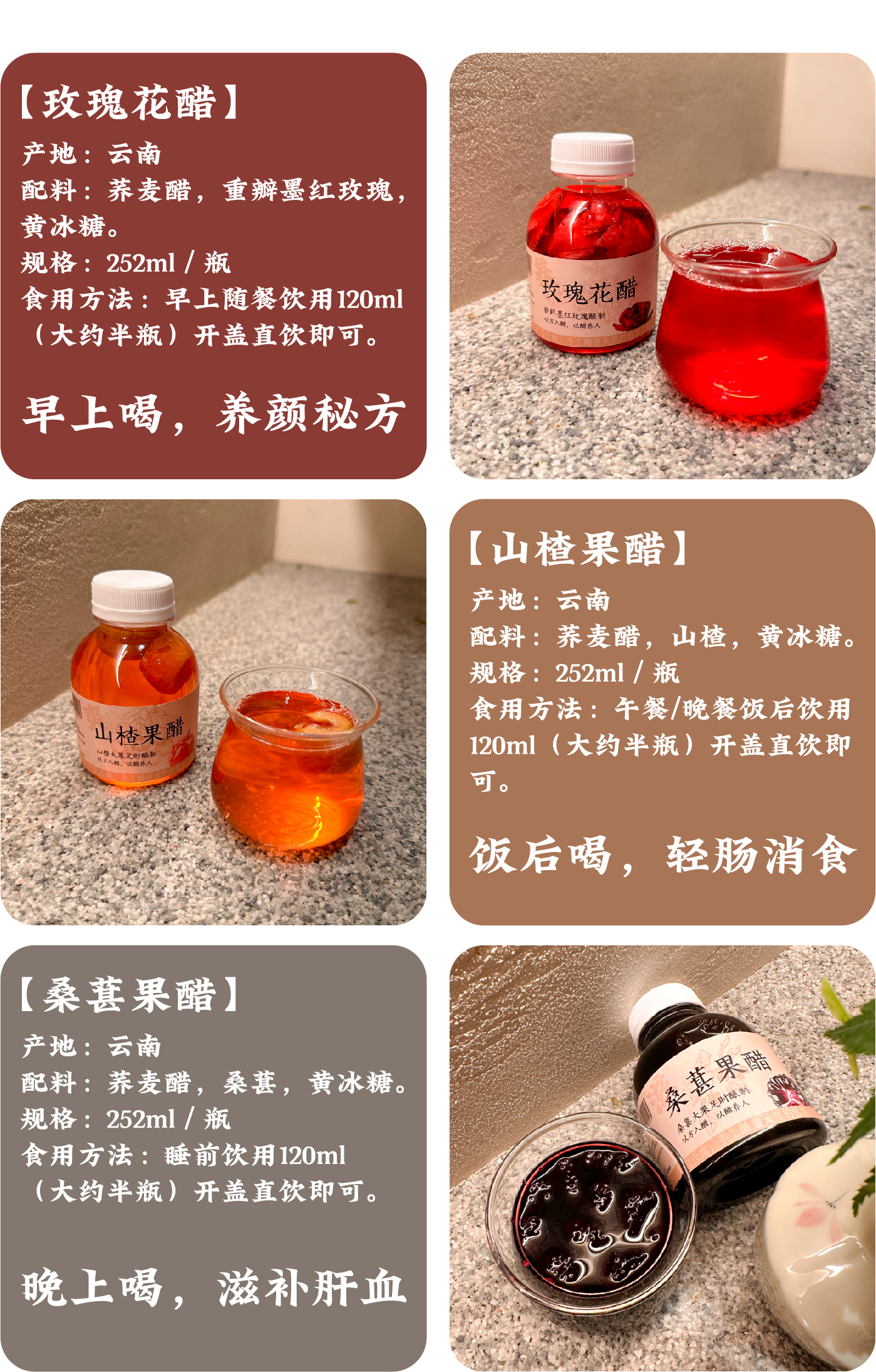 【滇农氏 云南手工酿·花果醋礼盒装】 玫瑰花醋/桑葚果醋/山楂果醋 252ml*9瓶 配料干净,传统手工酿制;严选云南高原可食用墨红鲜玫瑰,高原桑葚,泽州大山楂, 浓郁的花果