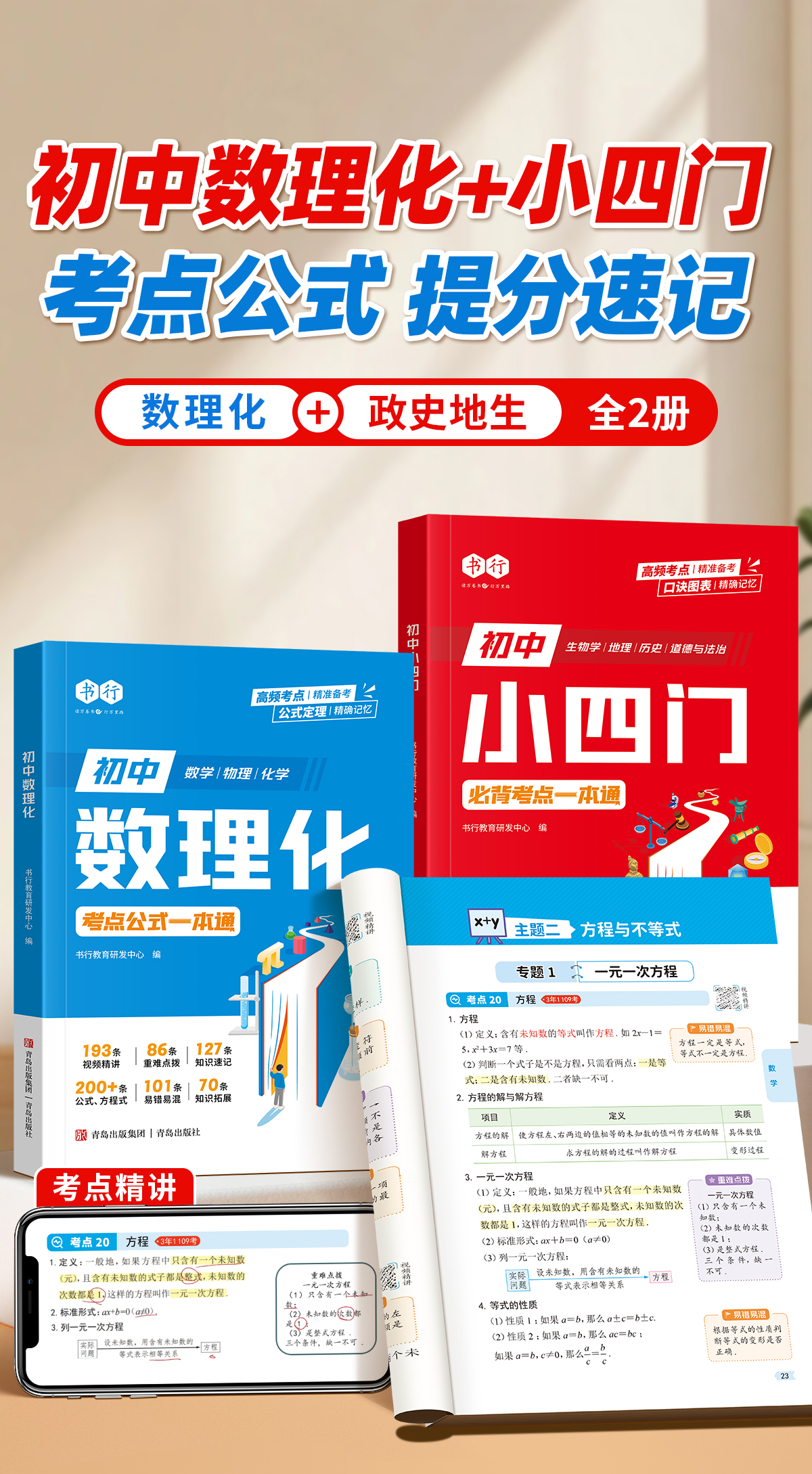 初中【数理化小四门】一本通考点及公式一本全 初中必刷题知识点速查 小升初必背考点公式定理一本通 含视频讲解