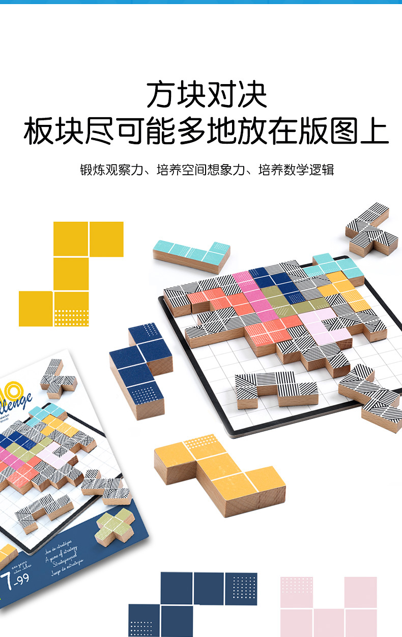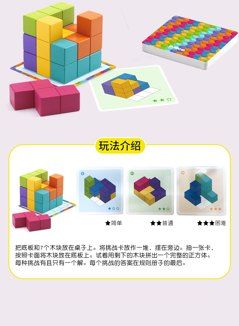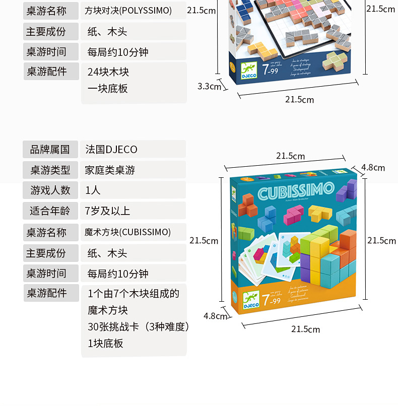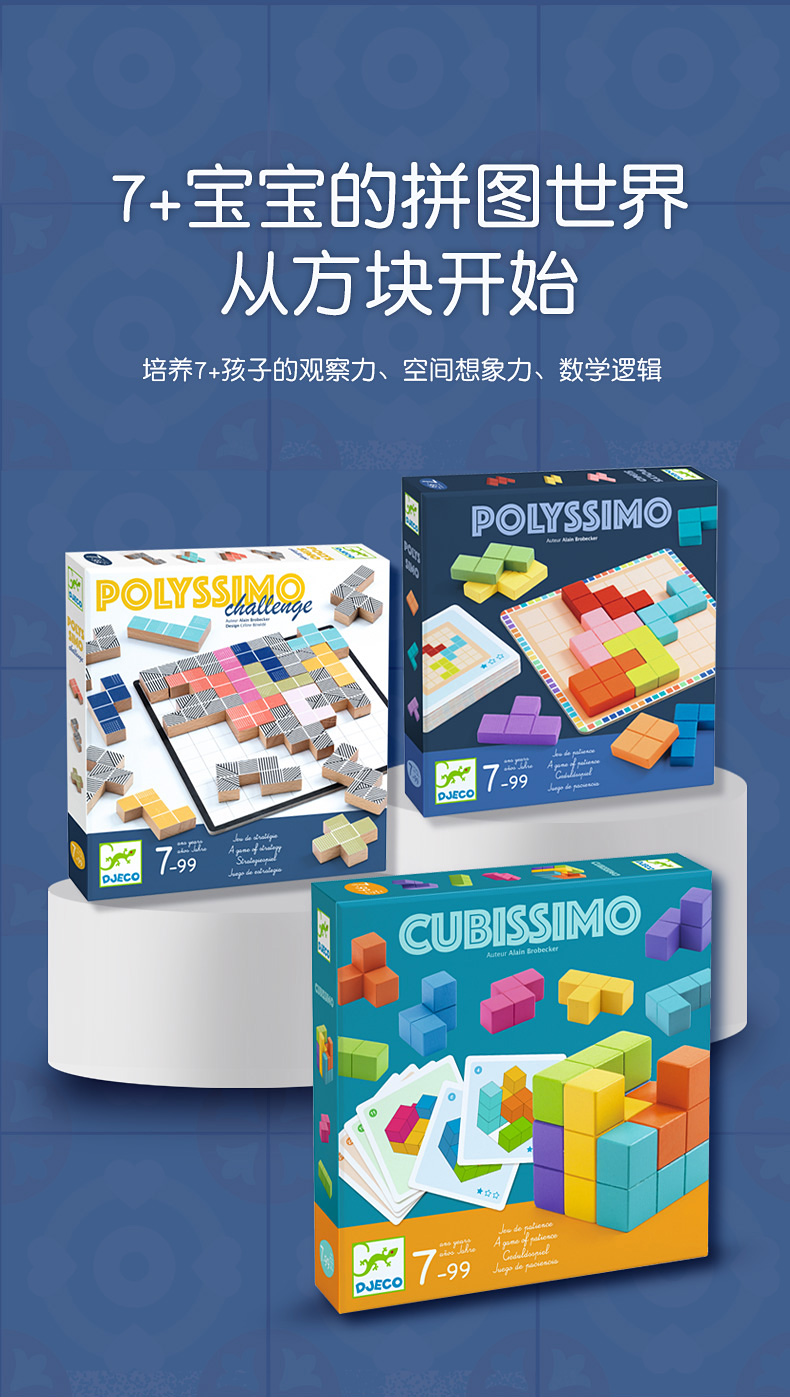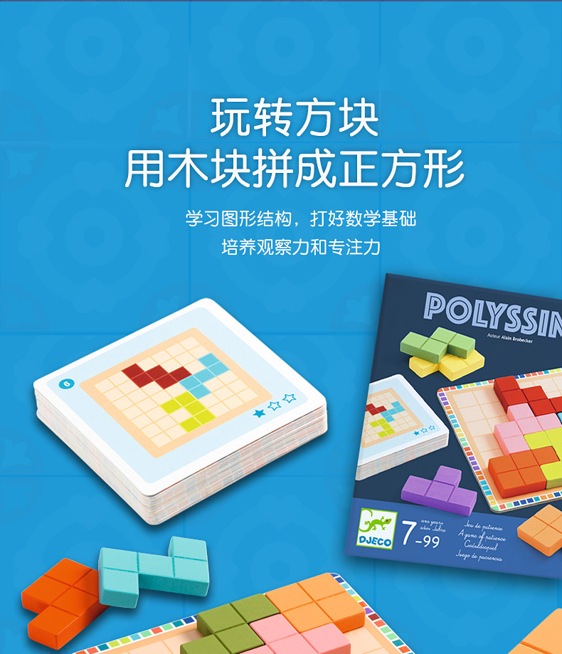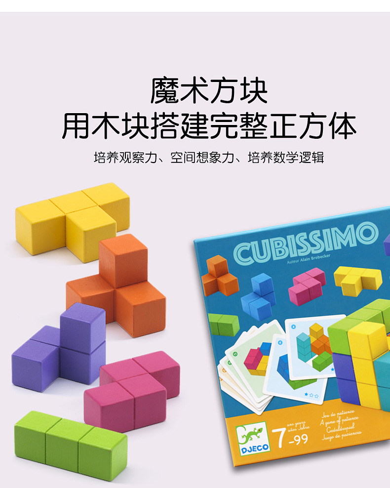 DJECO经典儿童桌游数学平面立体感训练魔术方块&方块对决&玩转方块