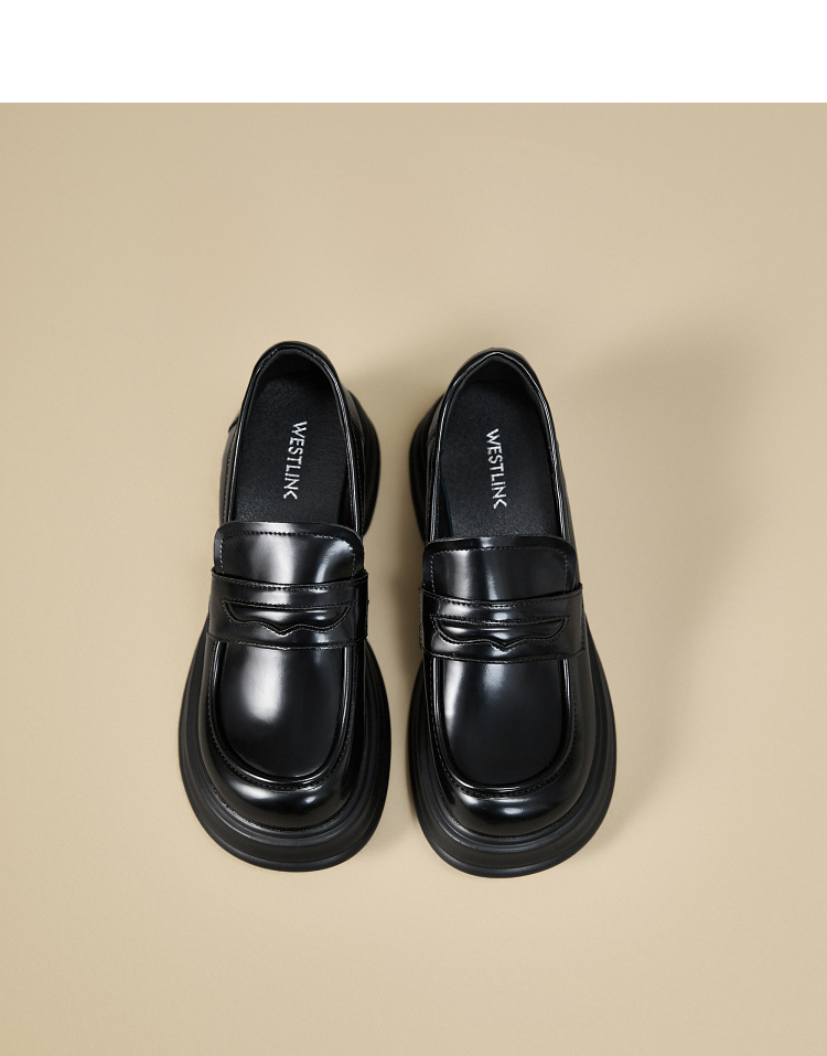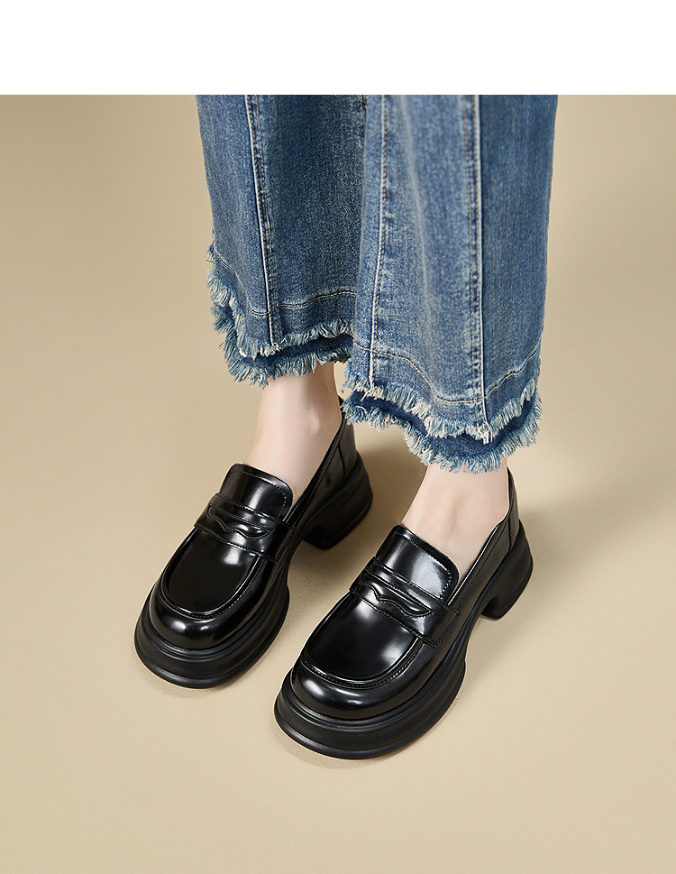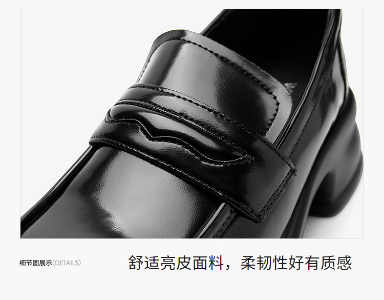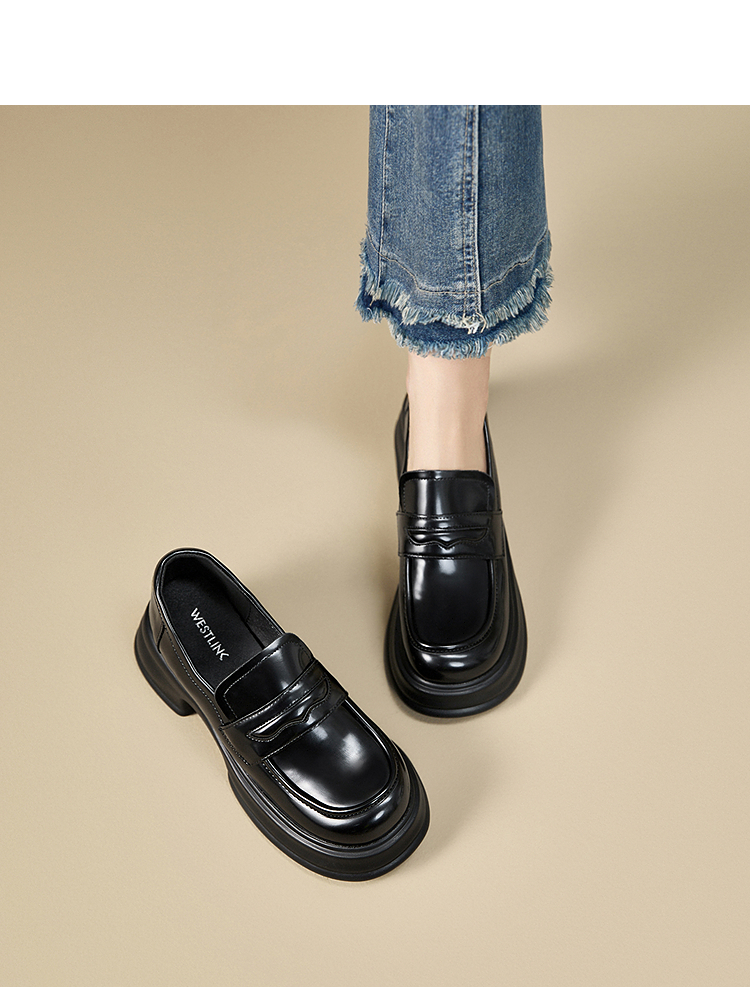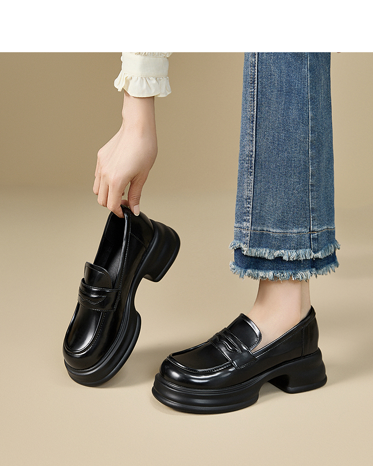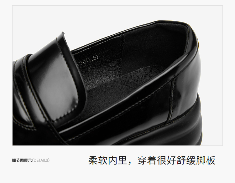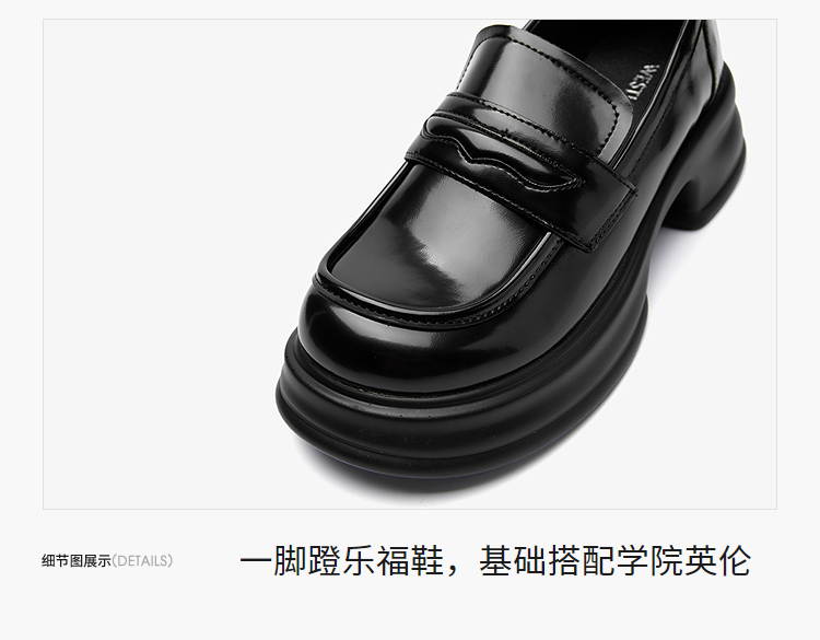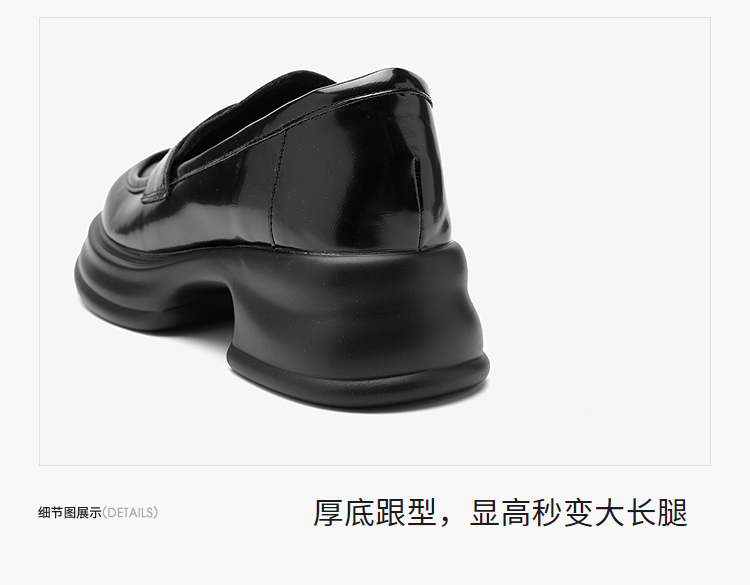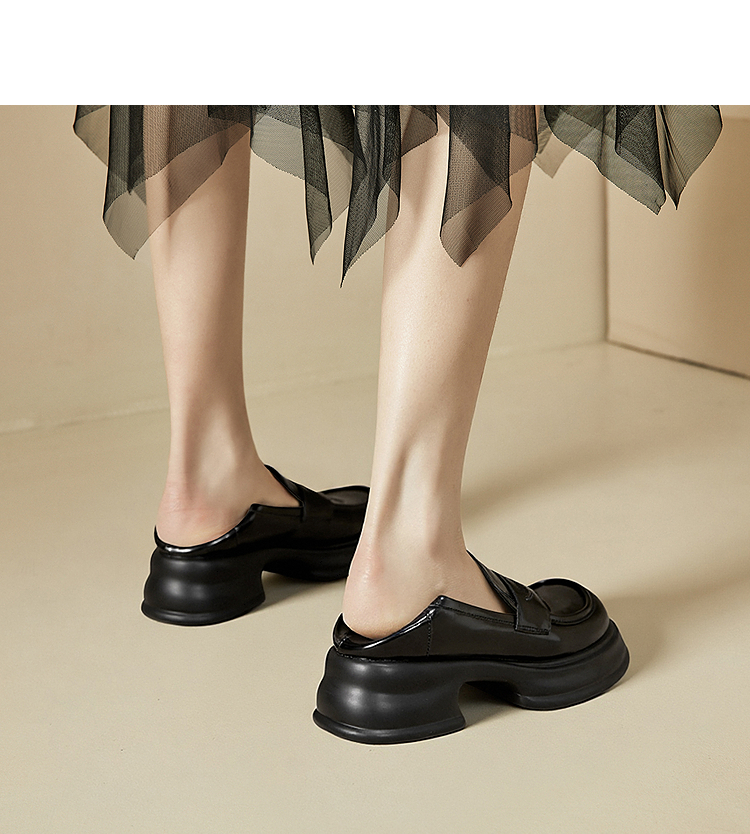 西遇增高厚底乐福鞋女新款秋季法式简约一脚蹬单鞋黑色小皮鞋D0333052