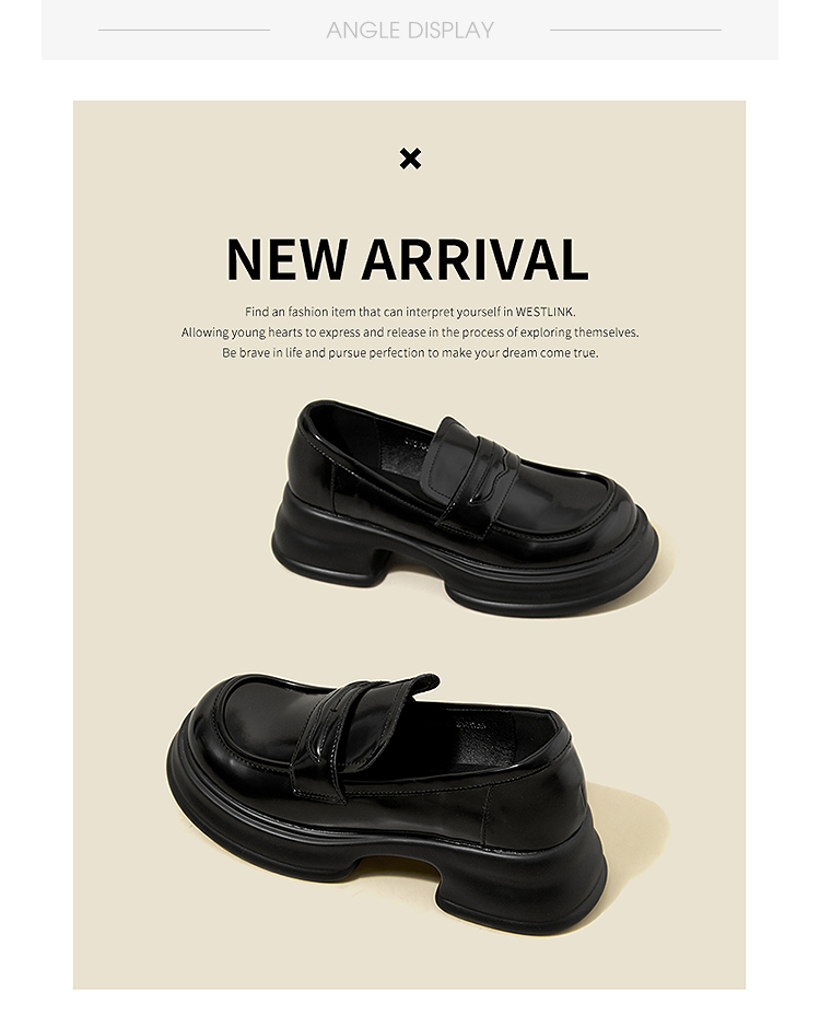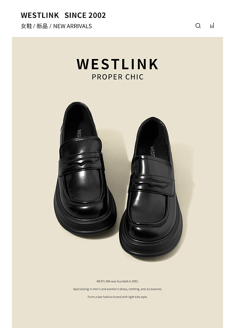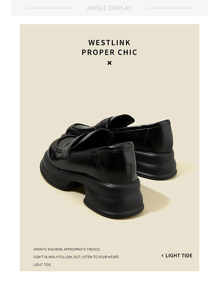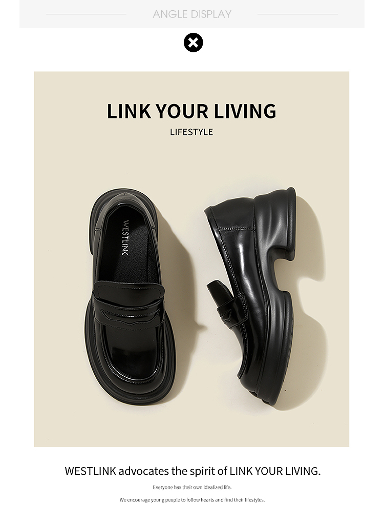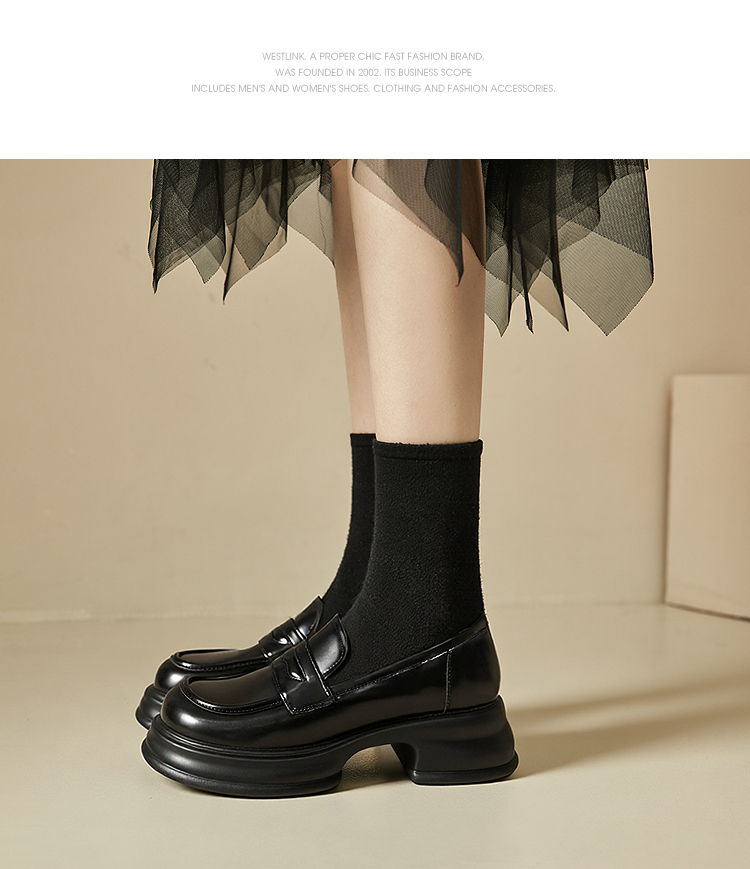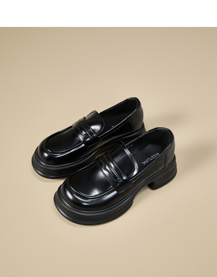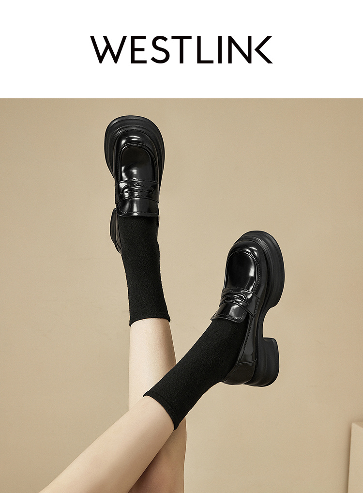 西遇增高厚底乐福鞋女新款秋季法式简约一脚蹬单鞋黑色小皮鞋D0333052