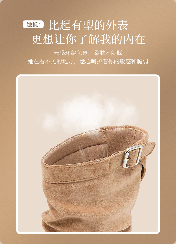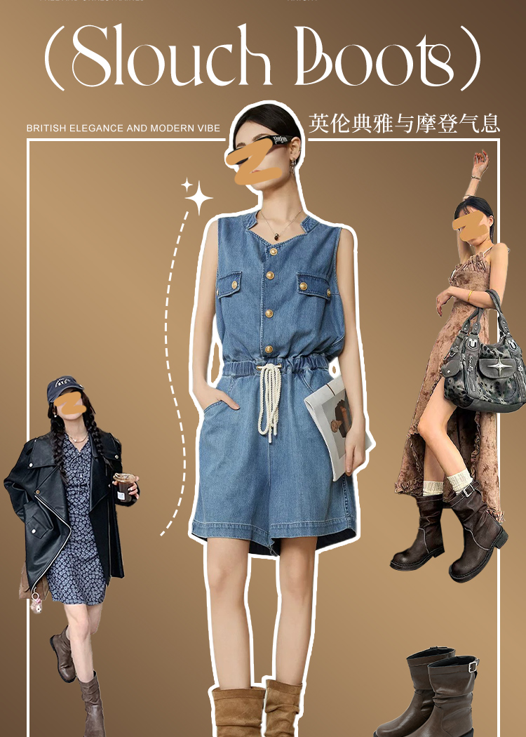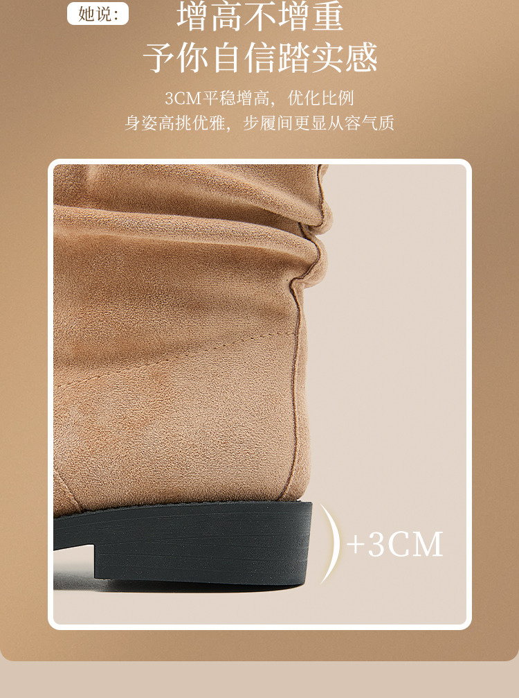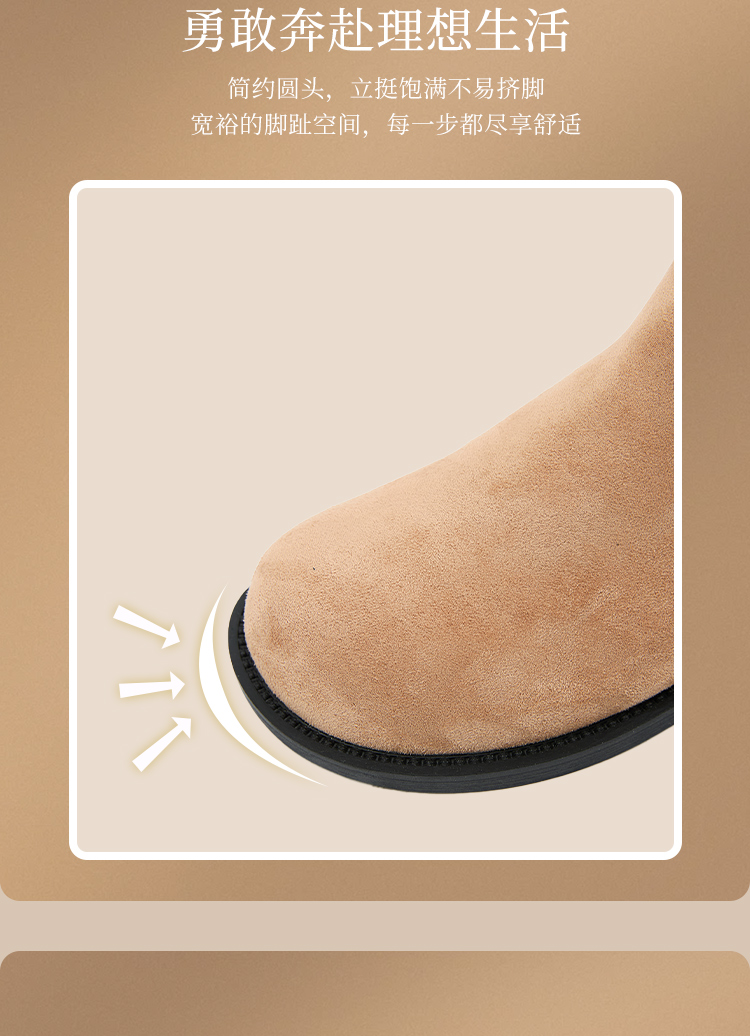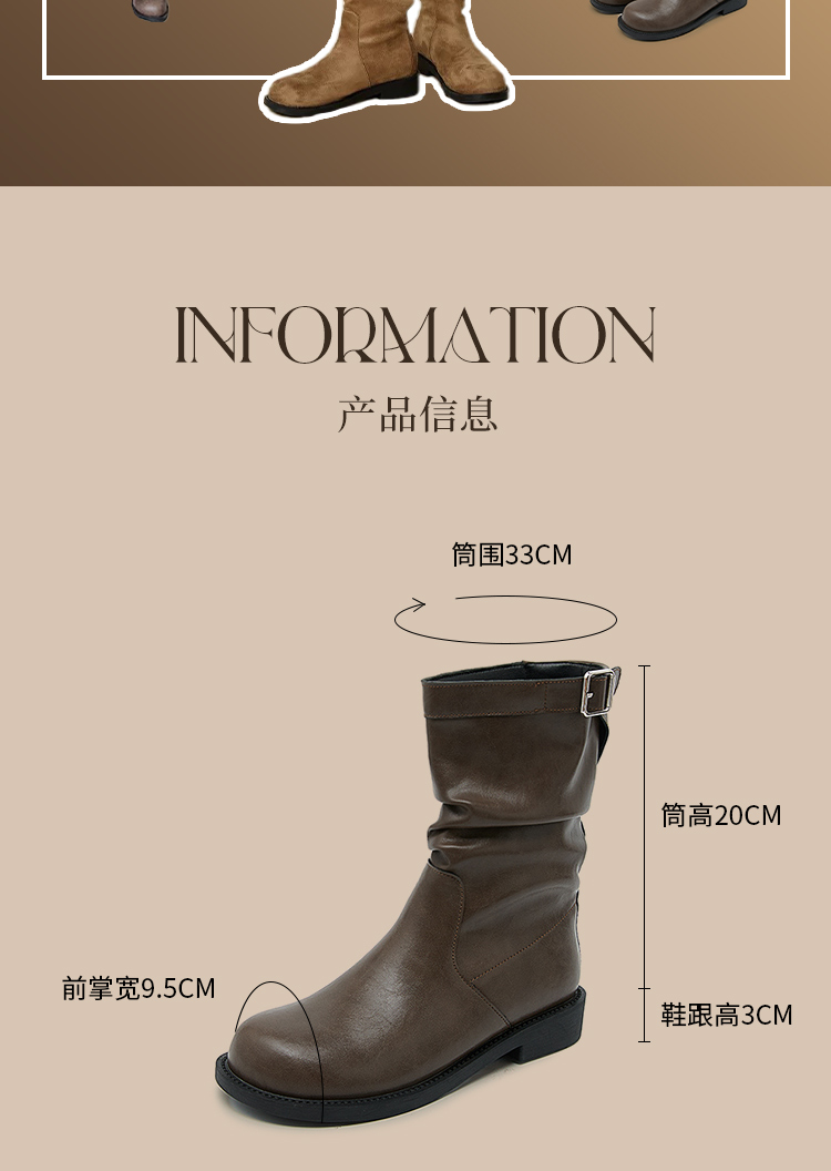 西遇复古中筒骑士靴女新款秋季英伦风圆头褶皱堆堆靴黑色短靴D0047434