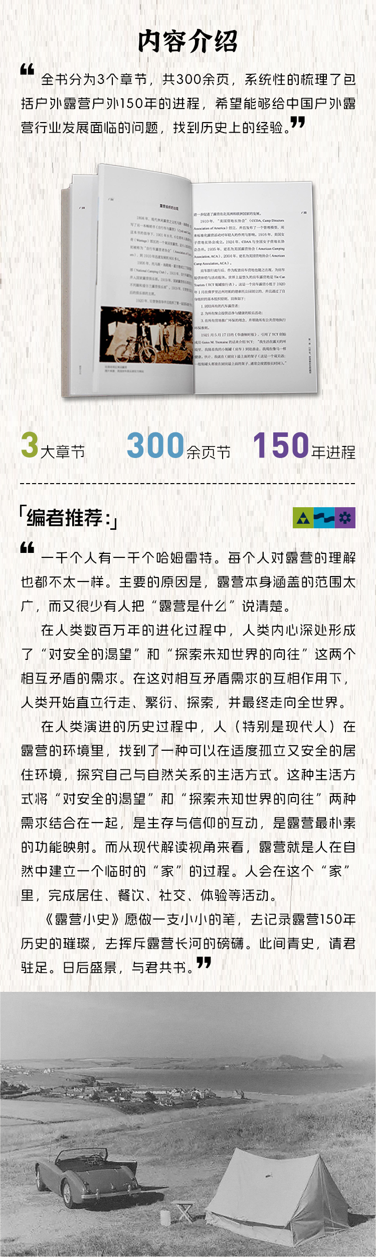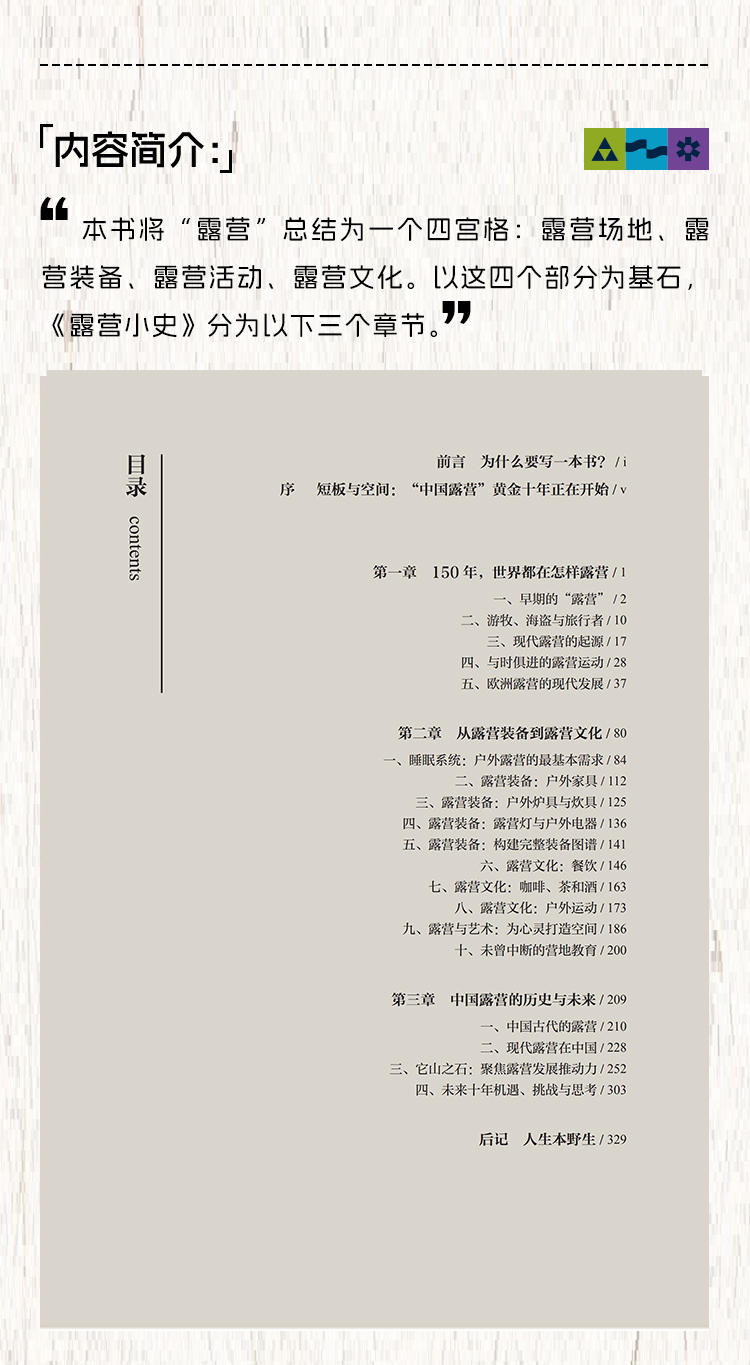《露营小史》 穿越人类户外千年变迁 梳理现代露营150年发展的历史 让全世界的经验 为当下中国户外露营的发展 给出更多方向