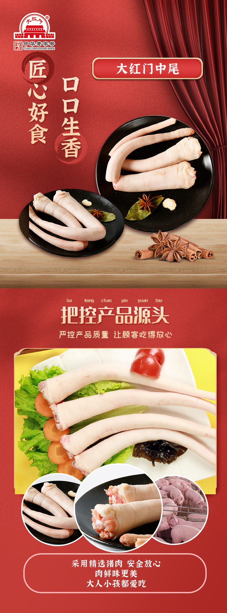 旗舰店大红门鲜猪长尾1kg