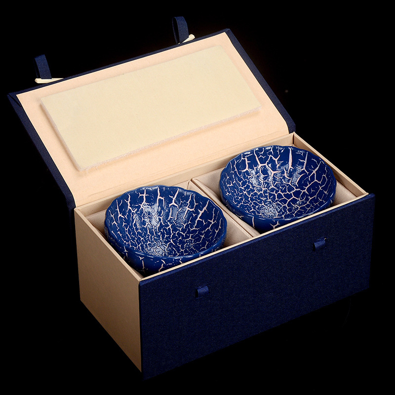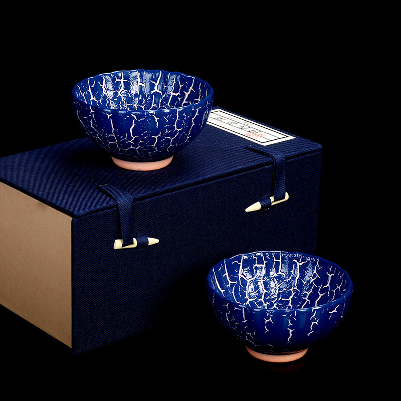 「一对礼盒装」建阳建盏主人杯茶盏 品茗杯手工陶瓷茶杯蚯蚓走泥纹窑变杯餐饮用具