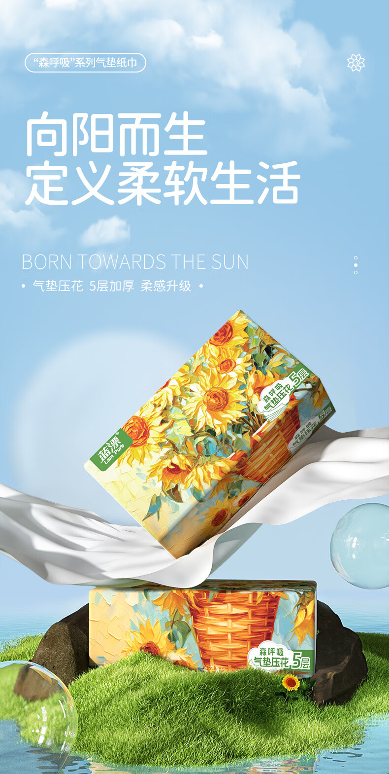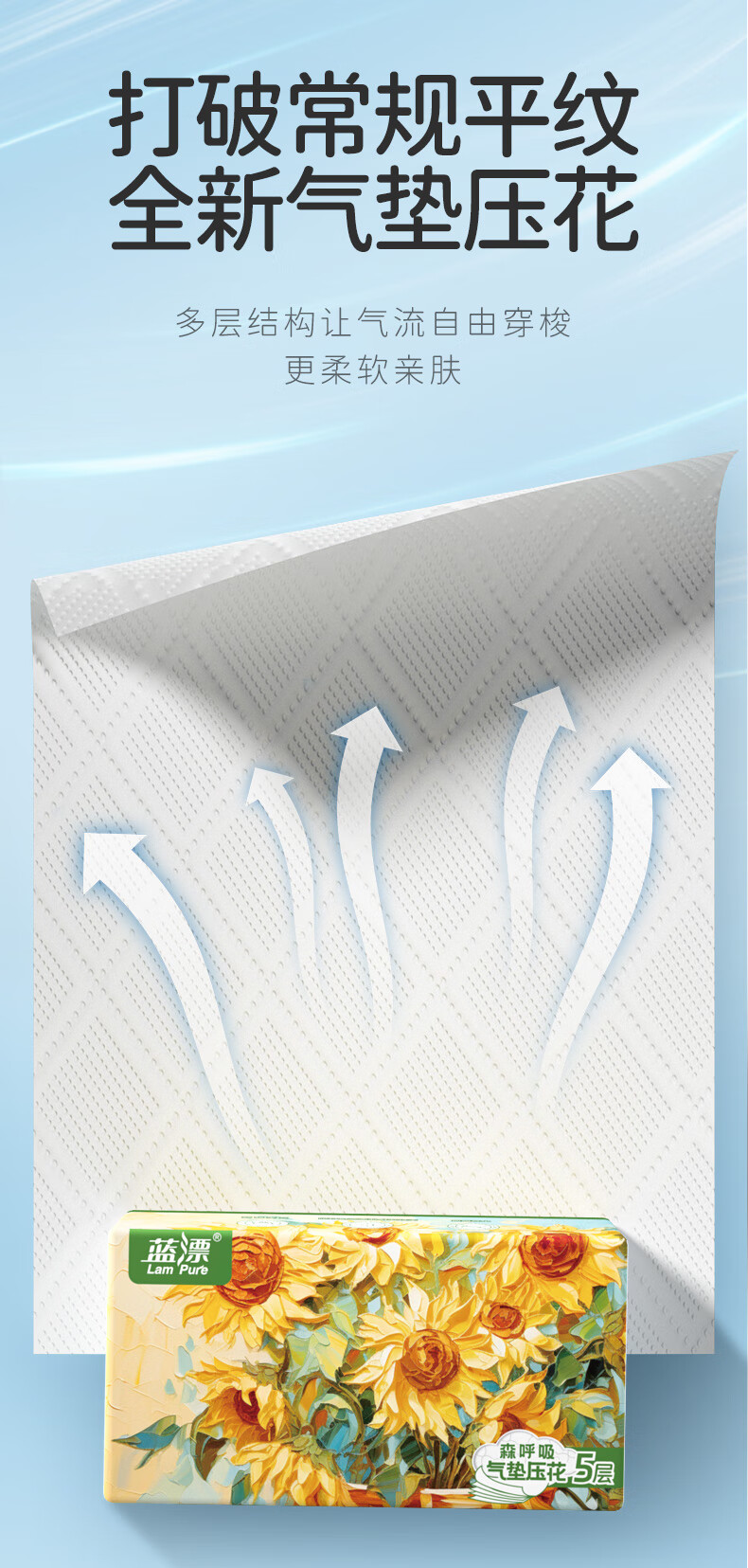 【自营】蓝漂(Lam pure)白色抽纸压花加厚自然无香面纸巾擦手纸卫生纸巾32包 LP-49587
