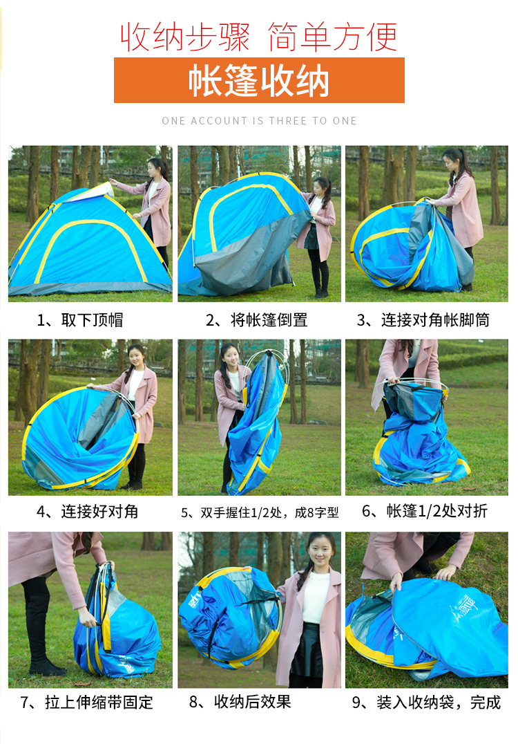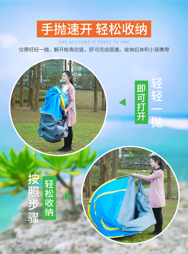 狼行者 速开全自动帐篷户外家庭套装防晒帐篷野营露营 蓝色
