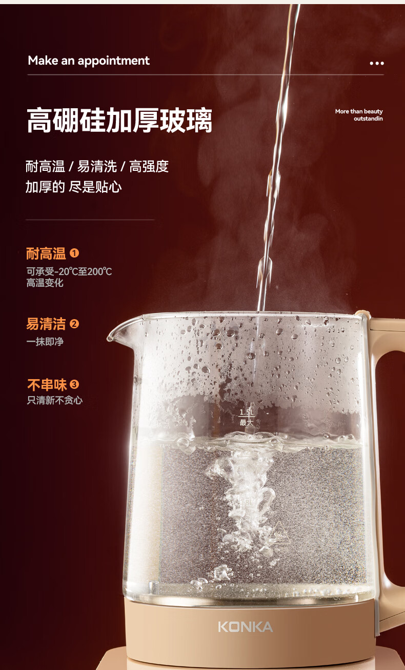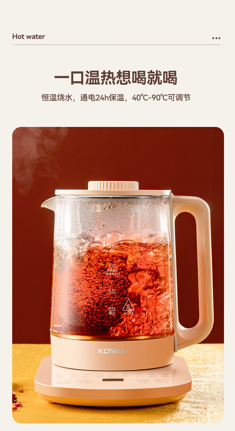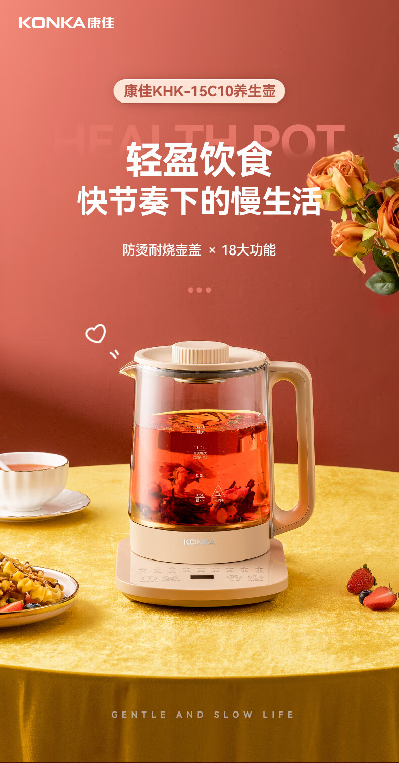 康佳(KONKA)KHK-15C10家用1.5L养生壶煮茶器烧水壶热水壶多功能保温花茶壶