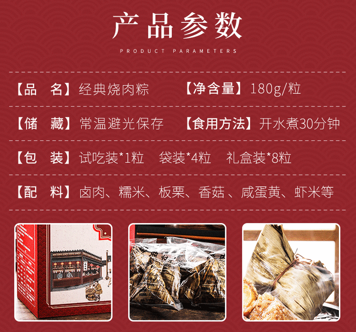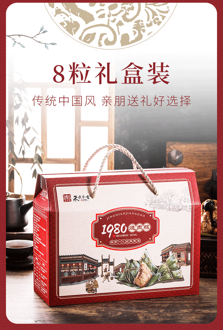 1980烧肉粽 经典烧肉粽4个手提袋装/8个礼盒装配甜辣酱