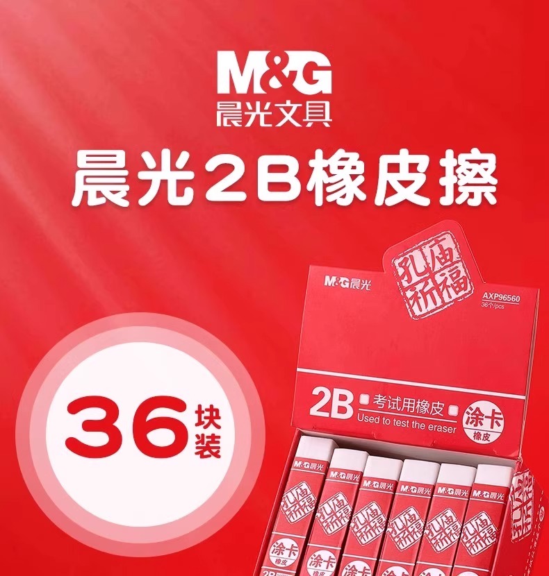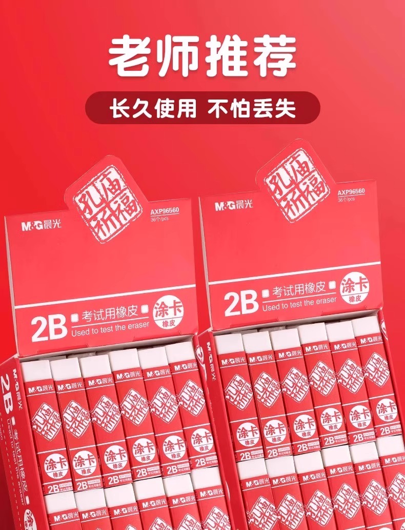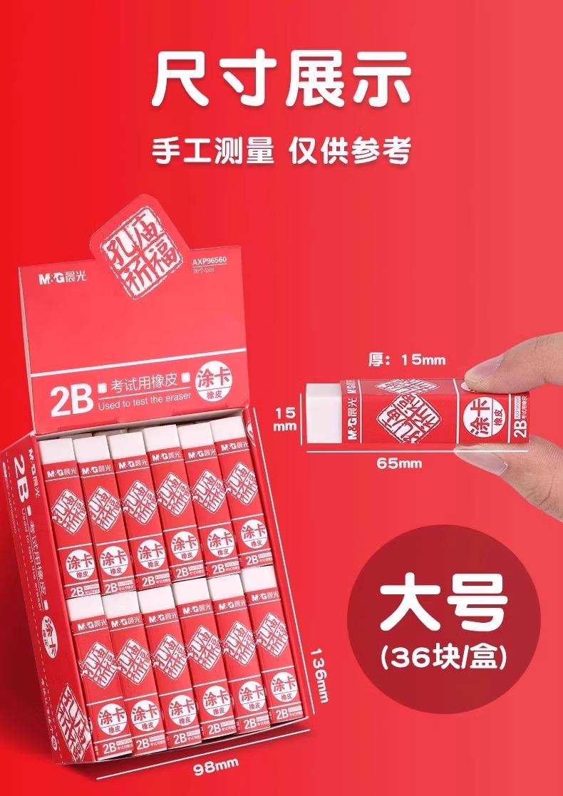 AXP96560晨光考试专用系列孔庙祈福橡皮2B 考试绘图擦不易留痕少屑橡皮