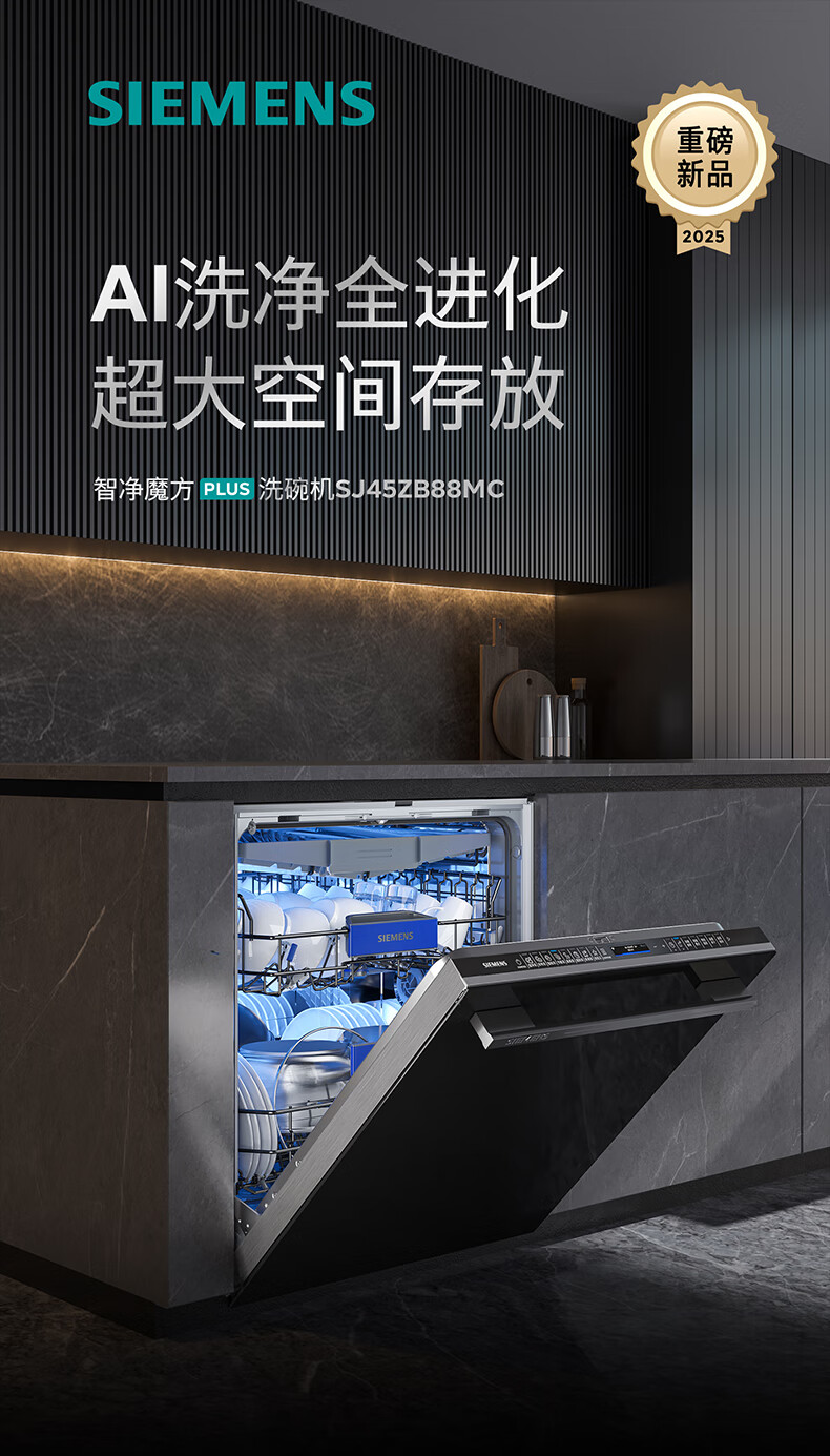 西门子(SIEMENS)【重磅新品】20+2套大别墅级洗碗机 智净魔方 AI智感油污240小时长效抑菌存 晶蕾烘干 智能互联 SJ45ZB88MC