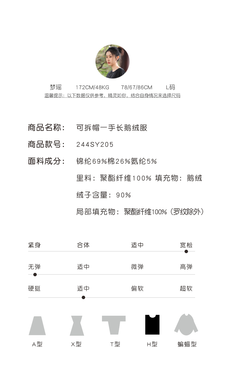 XIAOYU|可拆帽一手长鹅绒服244SY205