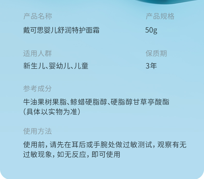 【秋田满满 任选推荐】戴可思婴儿舒润特护霜50g 至简配方 0岁+
