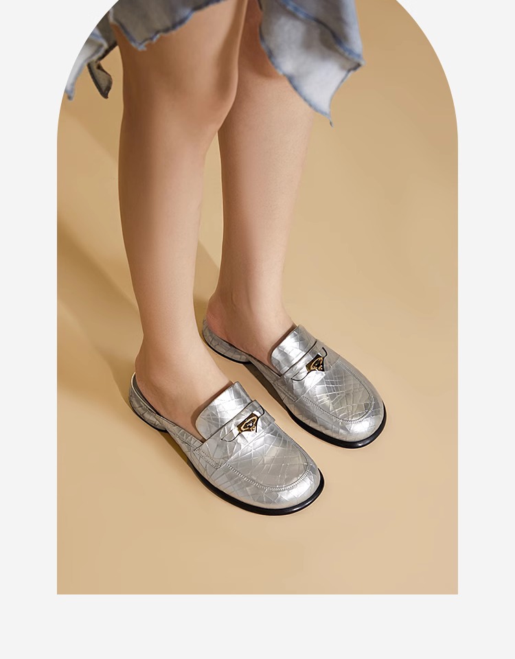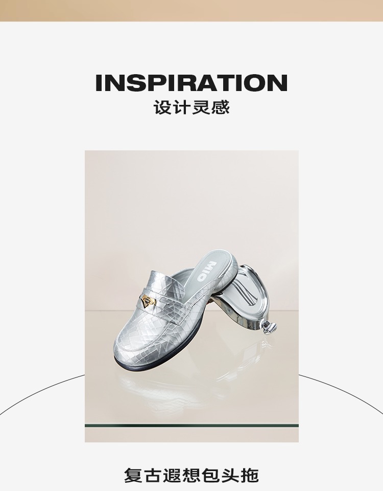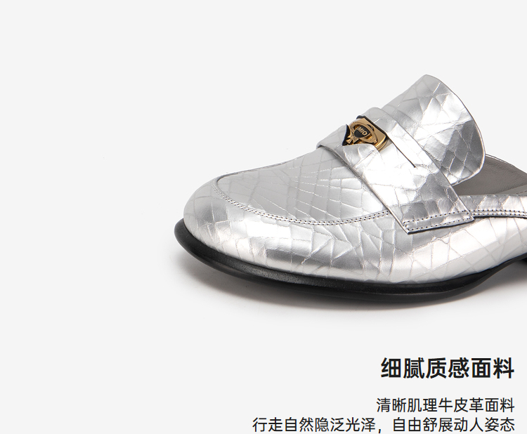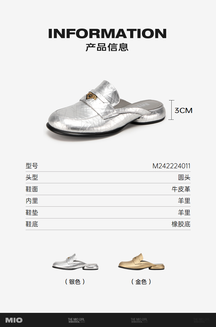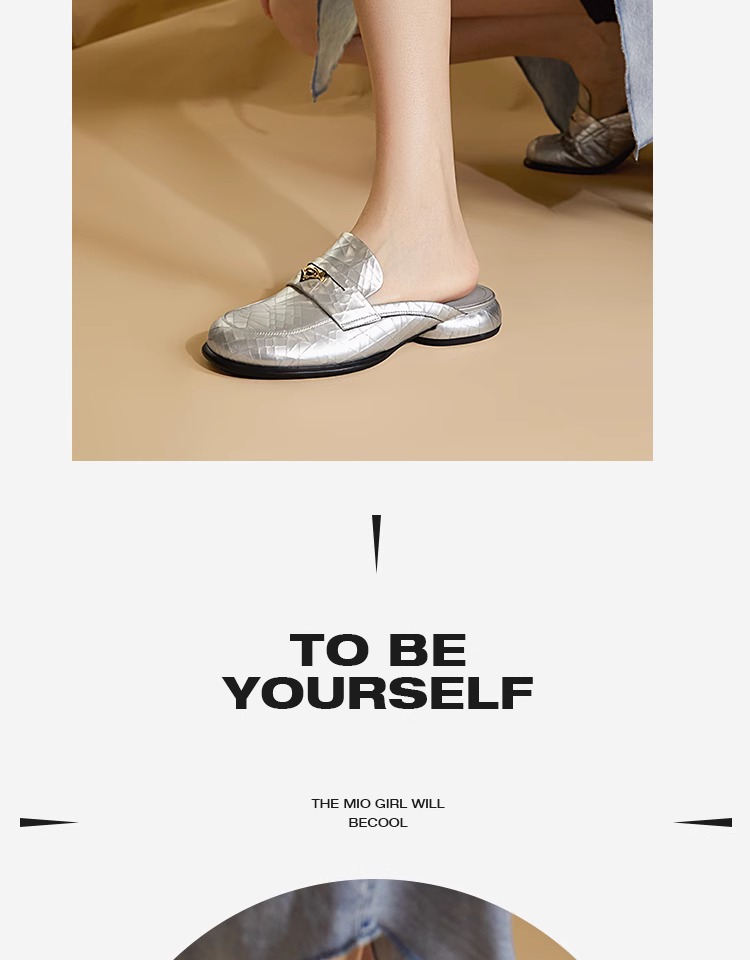 MIO米奥夏季拖鞋纯色低跟牛皮革面料时尚质感耐磨包头拖女M242224011