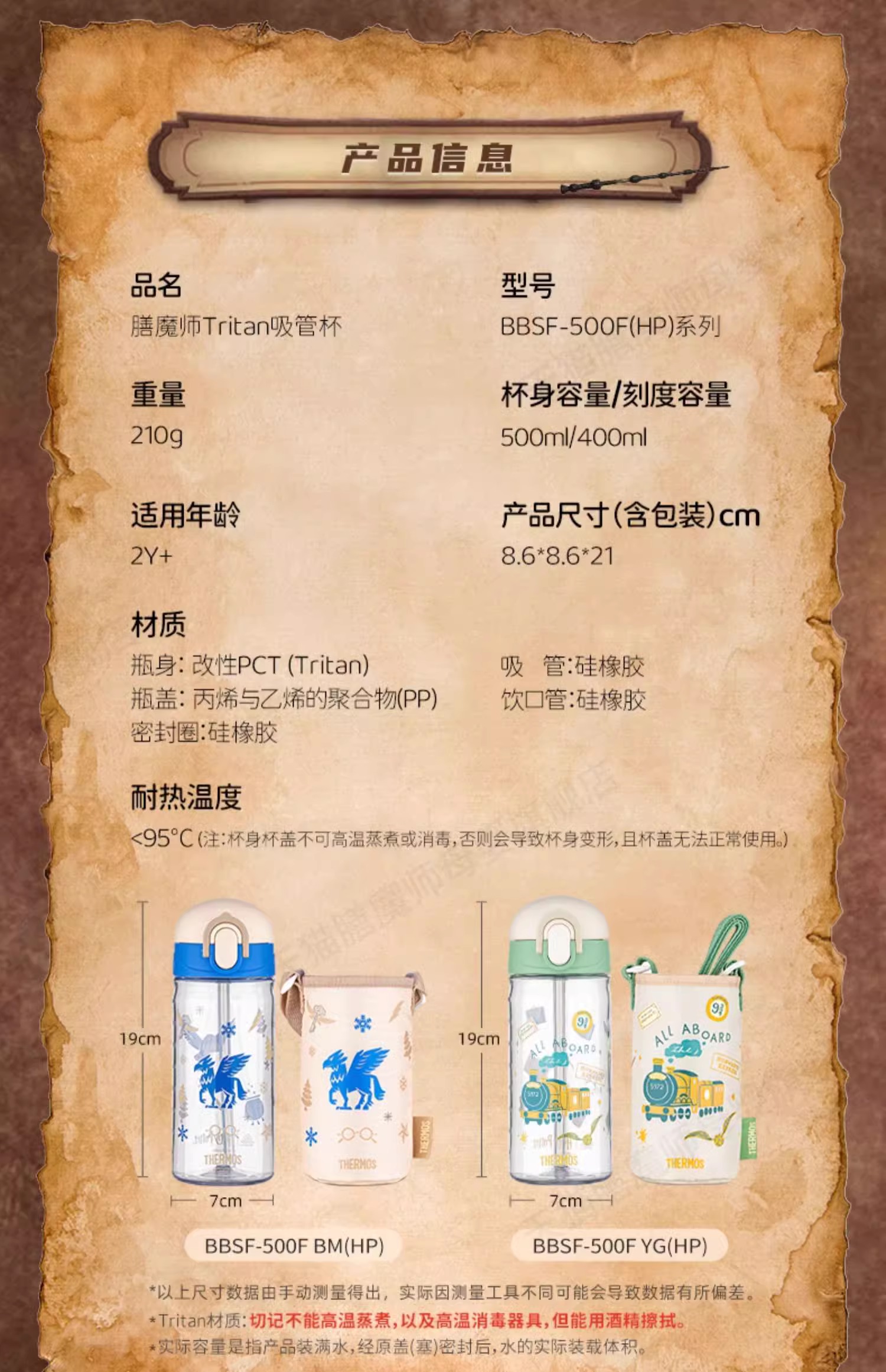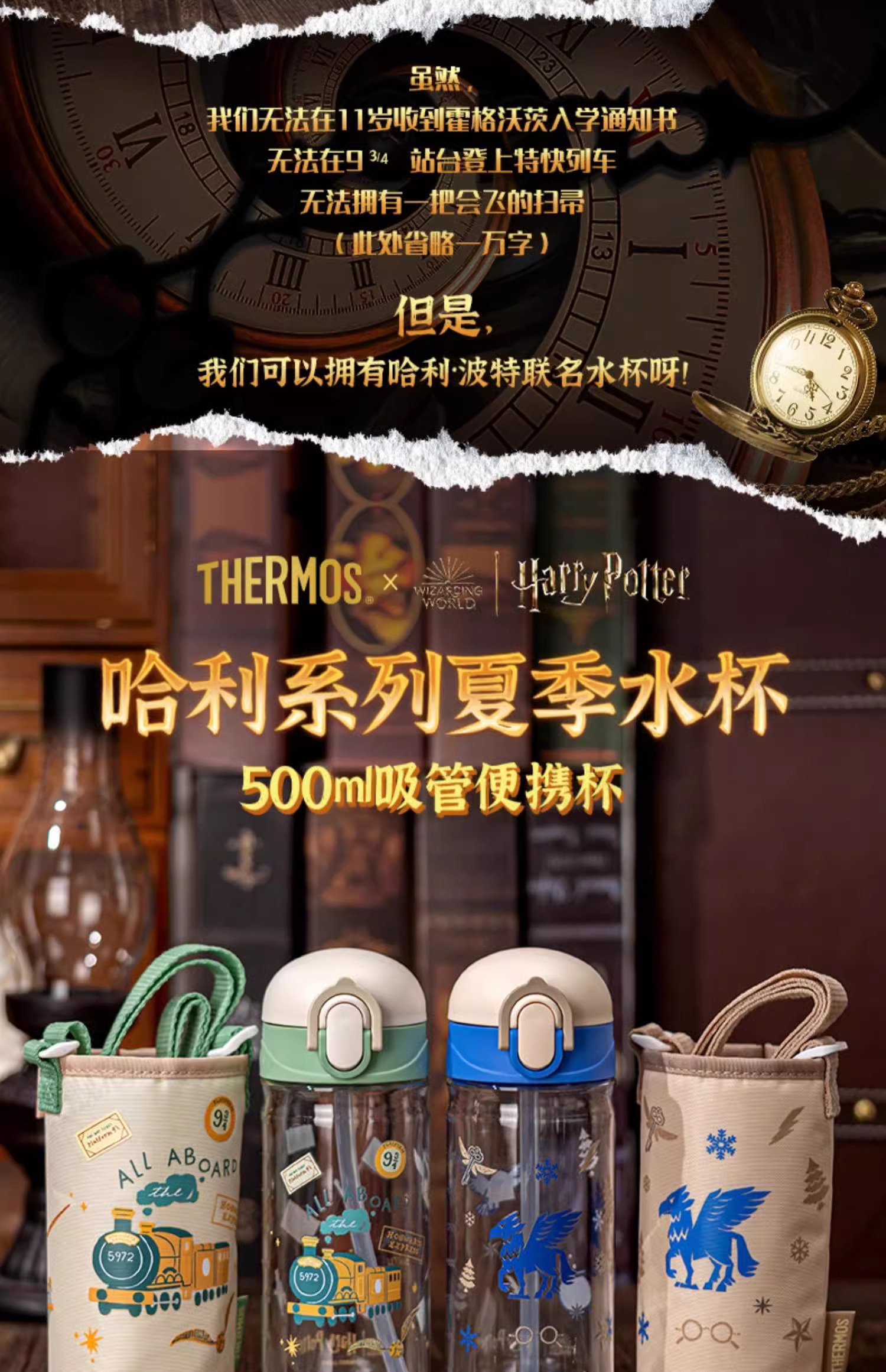 【清仓特惠3.5折,最后2个无货退款】膳魔师春夏Tritan500ml吸管杯哈利波特系列水杯大容量儿童水杯