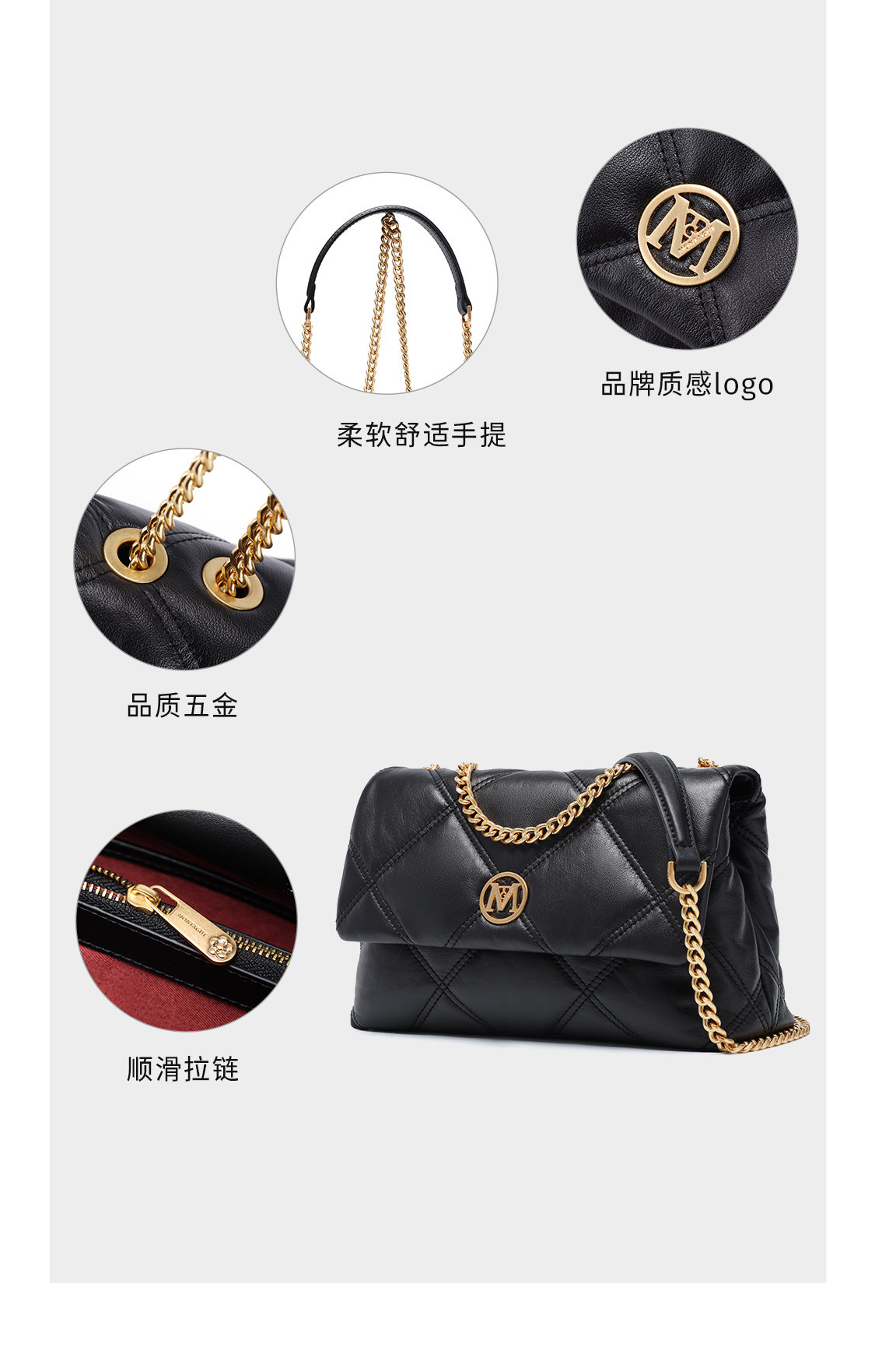 梦特娇女包2025新款时尚小香风链条单肩包牛皮真皮百搭斜挎腋下包