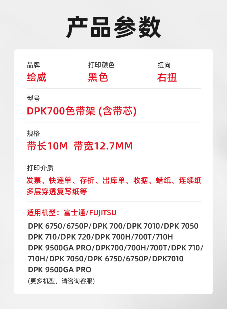 绘威DPK700色带架适用富士通dpk9500ga pro DPK710 DPK7010 6750 6750P 700H/T 770 720T针式打印机