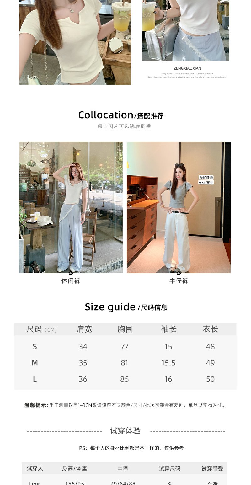 <曾小咸推荐>韩系简约正肩修身短袖T恤