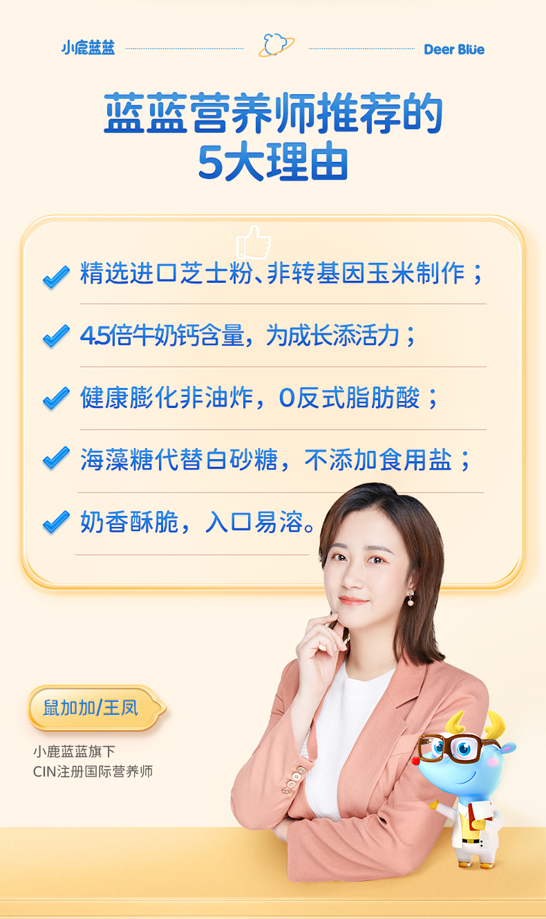 - 小鹿蓝蓝始终致力于为主人提供更优质、高性价比的产品、服务和体验,共同打造婴童零食生态圈,提升母婴行业的国货自信,守护和陪伴新一代儿童健康、快乐地成长。
