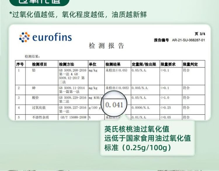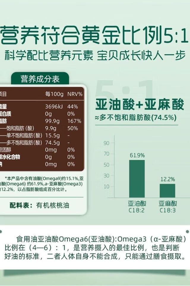 英氏有机山核桃油 110ml/瓶